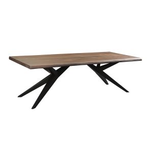 A modern dining table crafted with bold architectural lines and a solid, live-edged wood top.