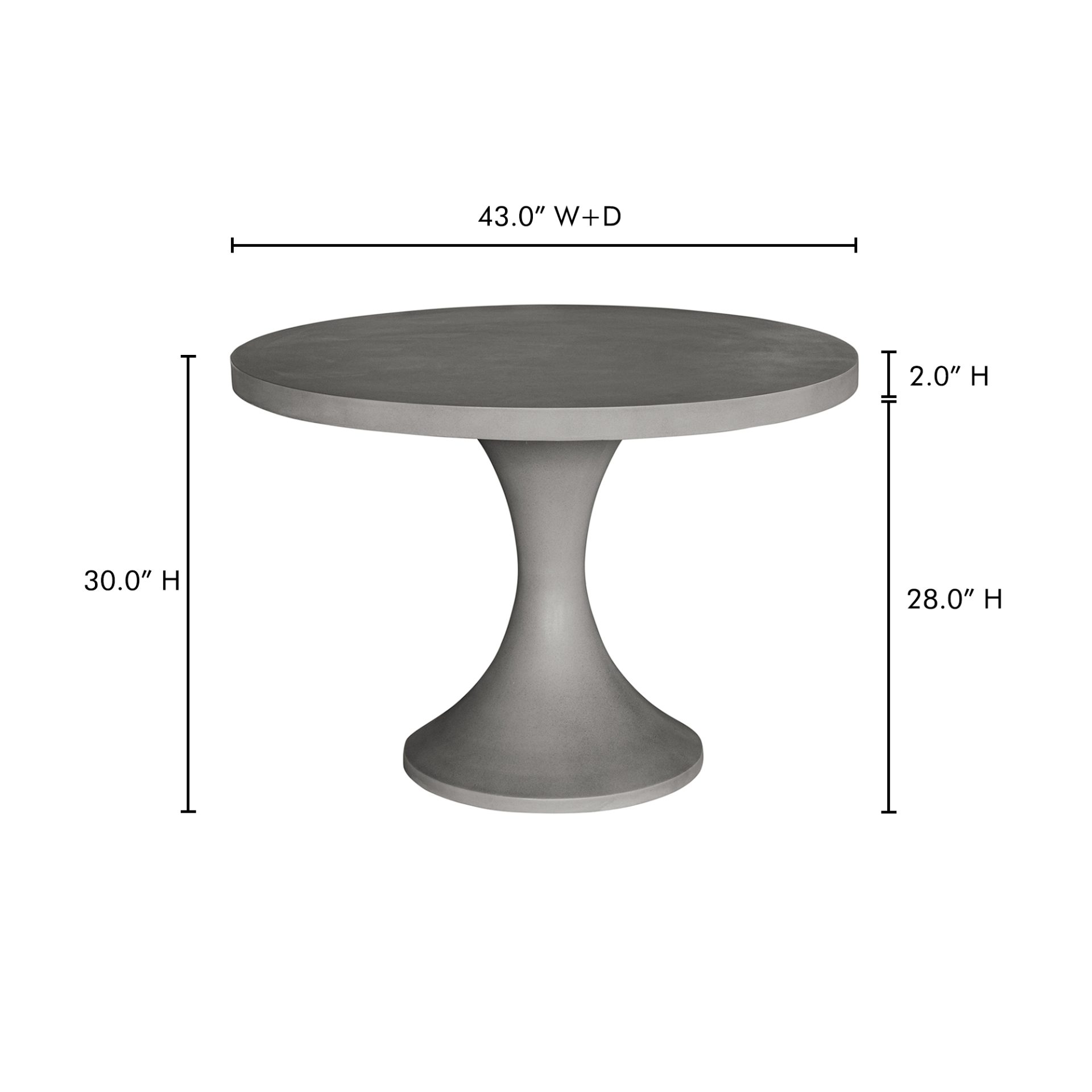 The Isadora is a 43.25″ round dining table with a concrete base and a mix of cement and natural fibers top.