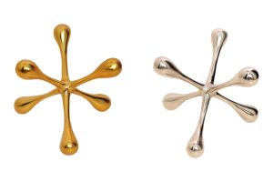A whimsical take on a favorite childhood game. A set of two large Jacks cast in solid aluminum with a nickel finish. A great table-top item or have the coolest paper weights on your desk at work.