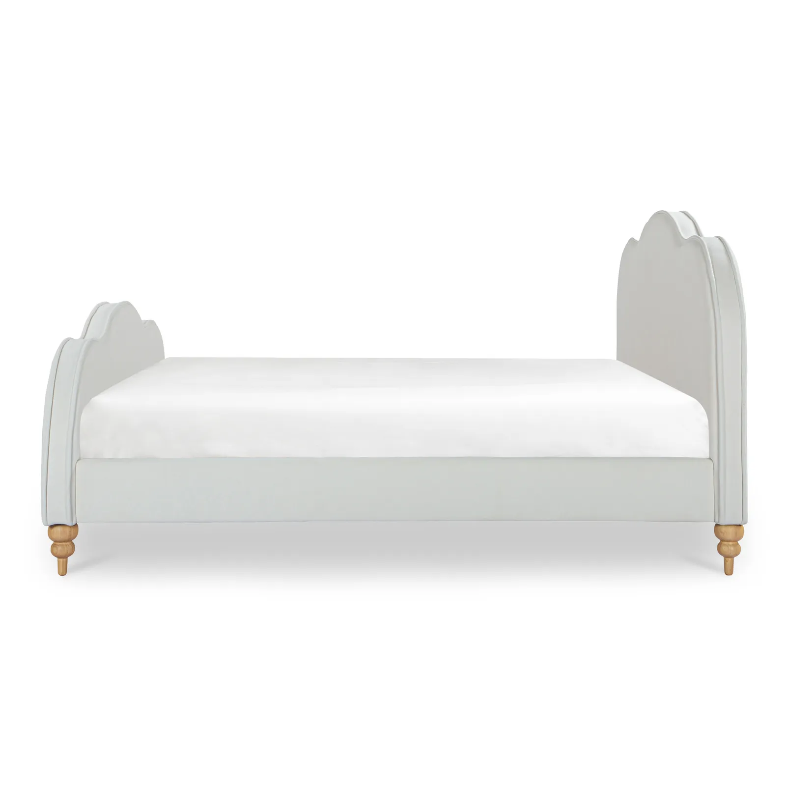 The Jacqueline bed embraces a Provençal-inspired design with a gently waved headboard and footboard, fully upholstered in cream. Geometric stacked legs of solid ash add a contemporary twist to traditional charm. Meticulously crafted with a padded headboard, this bed offers both comfort and durability, transforming the bedroom into a haven of tranquility.
