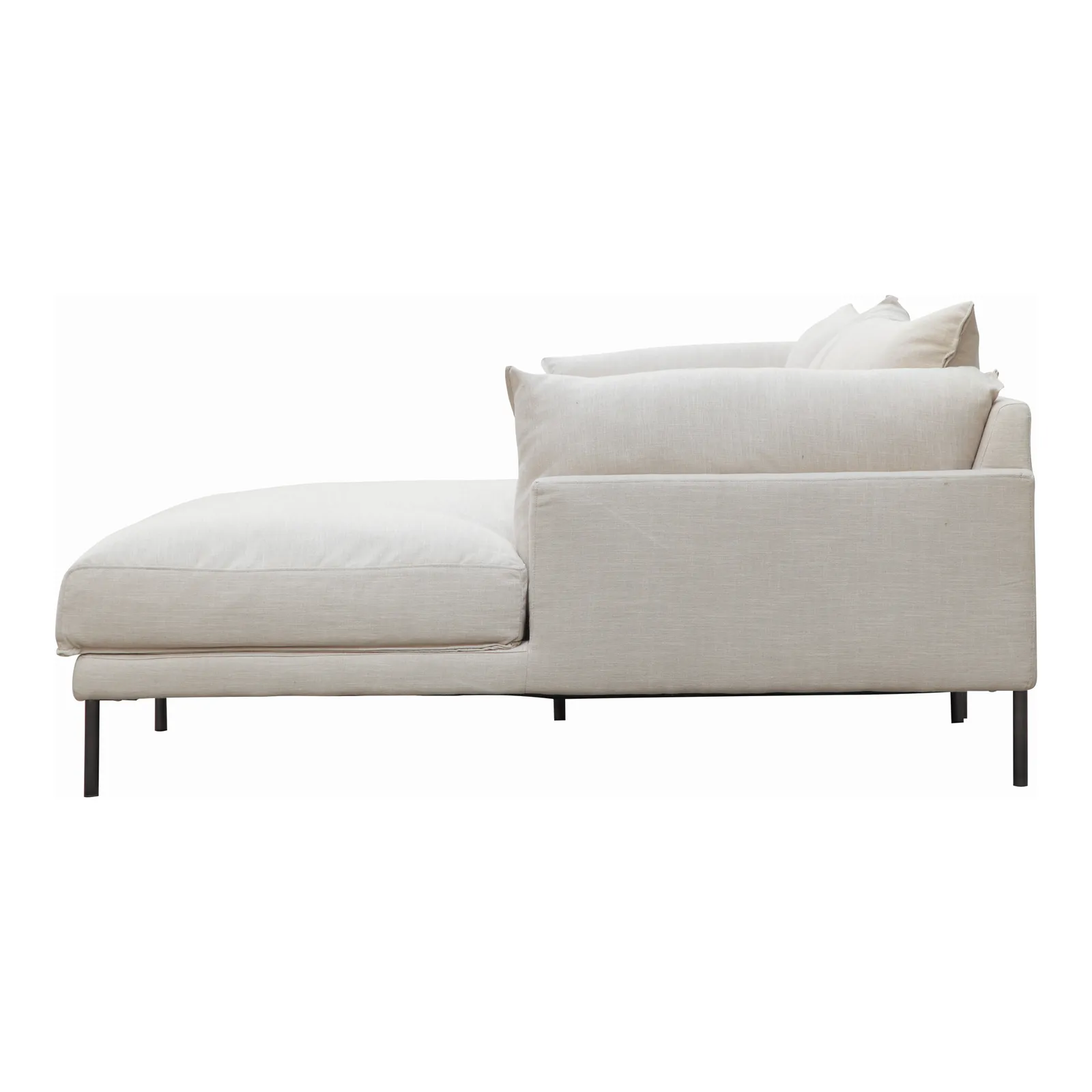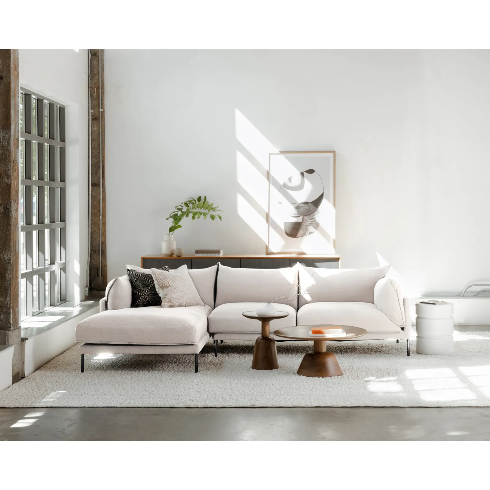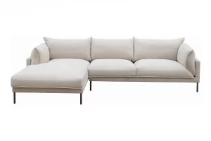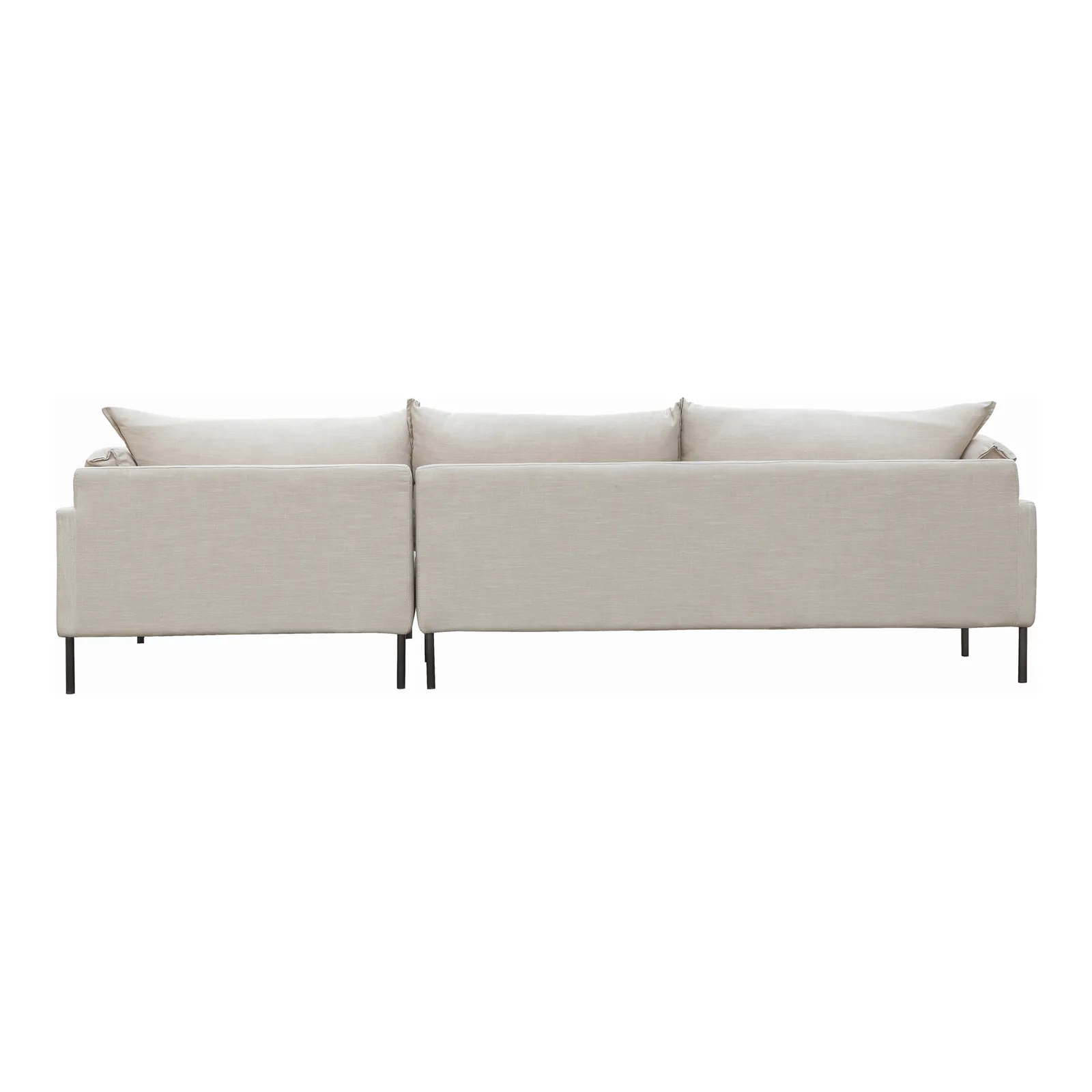 Scandinavian styling, a softly blocked silhouette, and neutral tone in a linen-blend textile, the Jamara left-facing sectional balances everyday simplicity with deep-seated comfort and plush down wrapped cushioning. Unwind, relax, and tone it all down with its muted taupe upholstery that leaves room for layering different shades and textured accents to your living space. Jamara features slim steel legs, clean stitch lines and removable seat and back cushions. Find balance in simplicity and sink right into this loveable design.