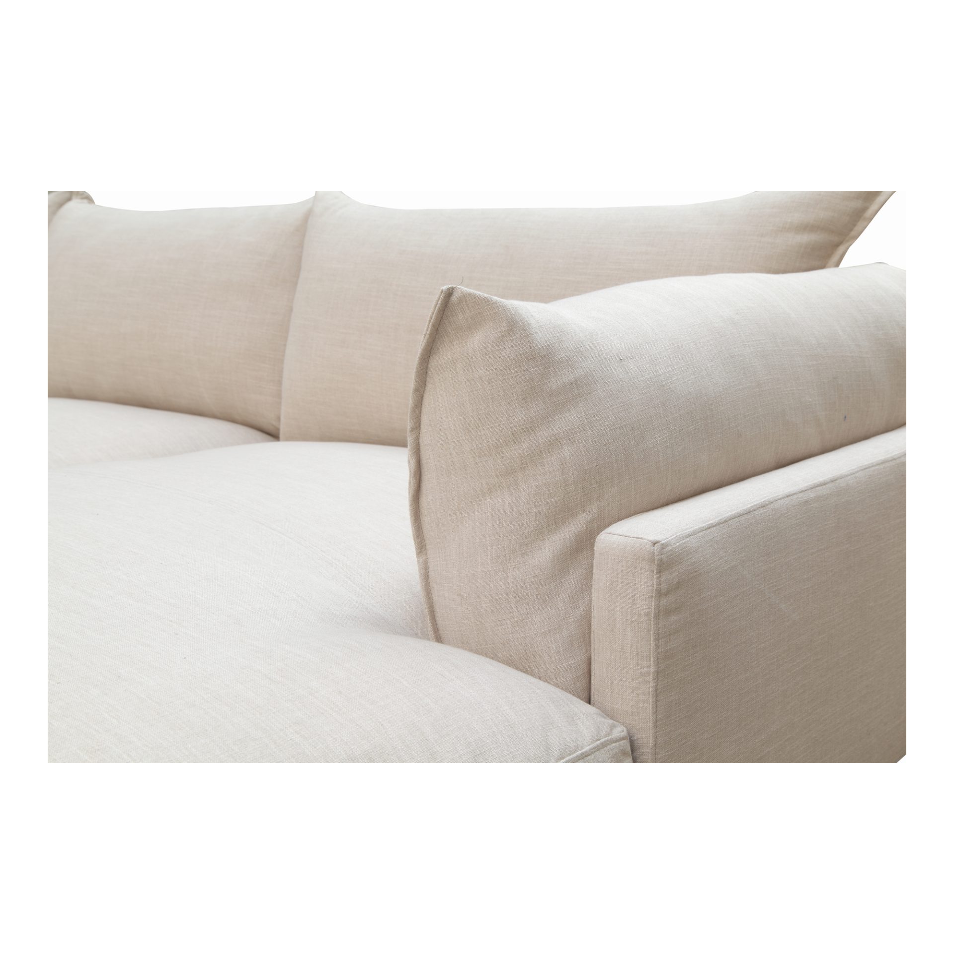 Scandinavian styling, a softly blocked silhouette, and neutral tone in a linen-blend textile, the Jamara left-facing sectional balances everyday simplicity with deep-seated comfort and plush down wrapped cushioning. Unwind, relax, and tone it all down with its muted taupe upholstery that leaves room for layering different shades and textured accents to your living space. Jamara features slim steel legs, clean stitch lines and removable seat and back cushions. Find balance in simplicity and sink right into this loveable design.