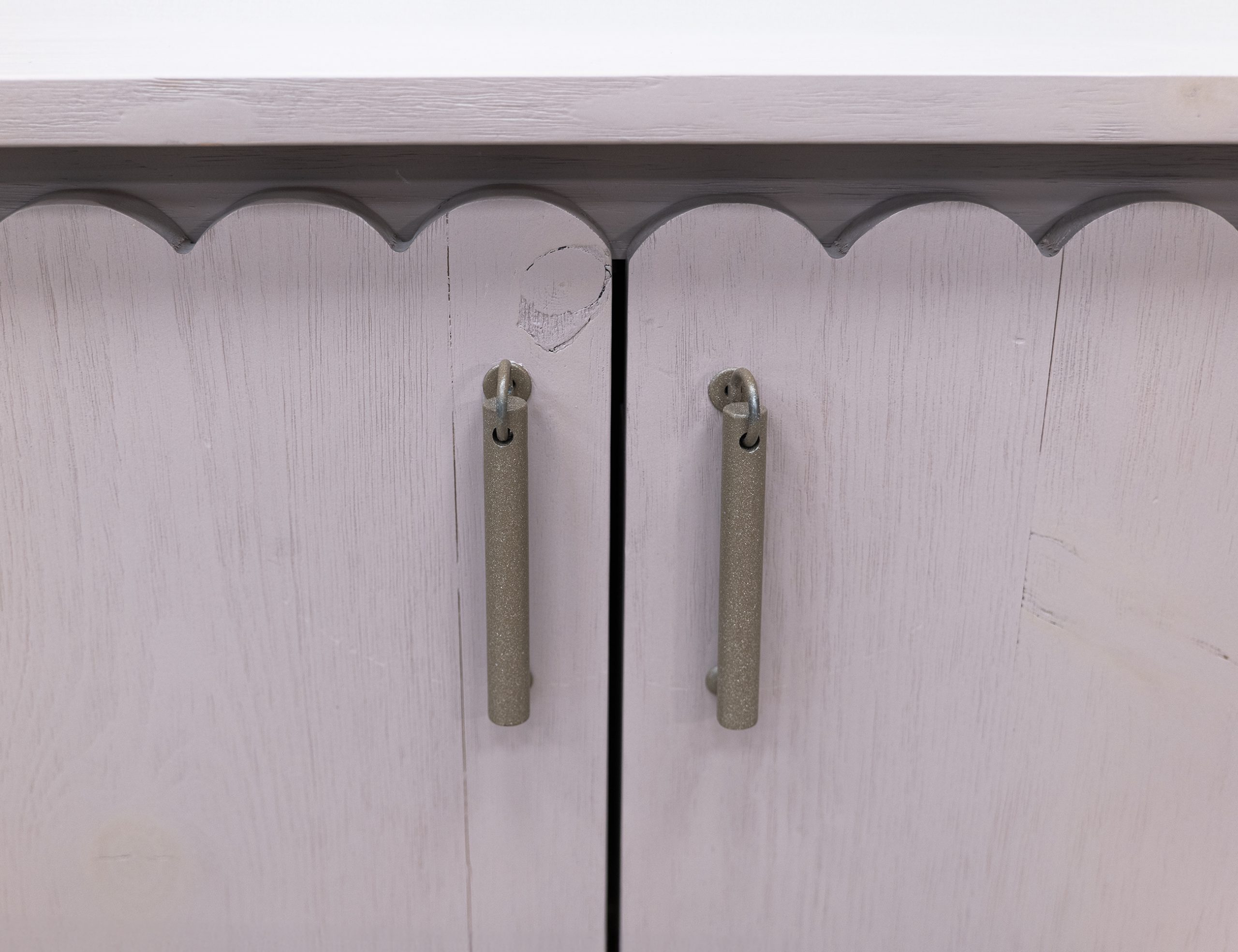 • Custom metal pendant pulls in a gold finish.
