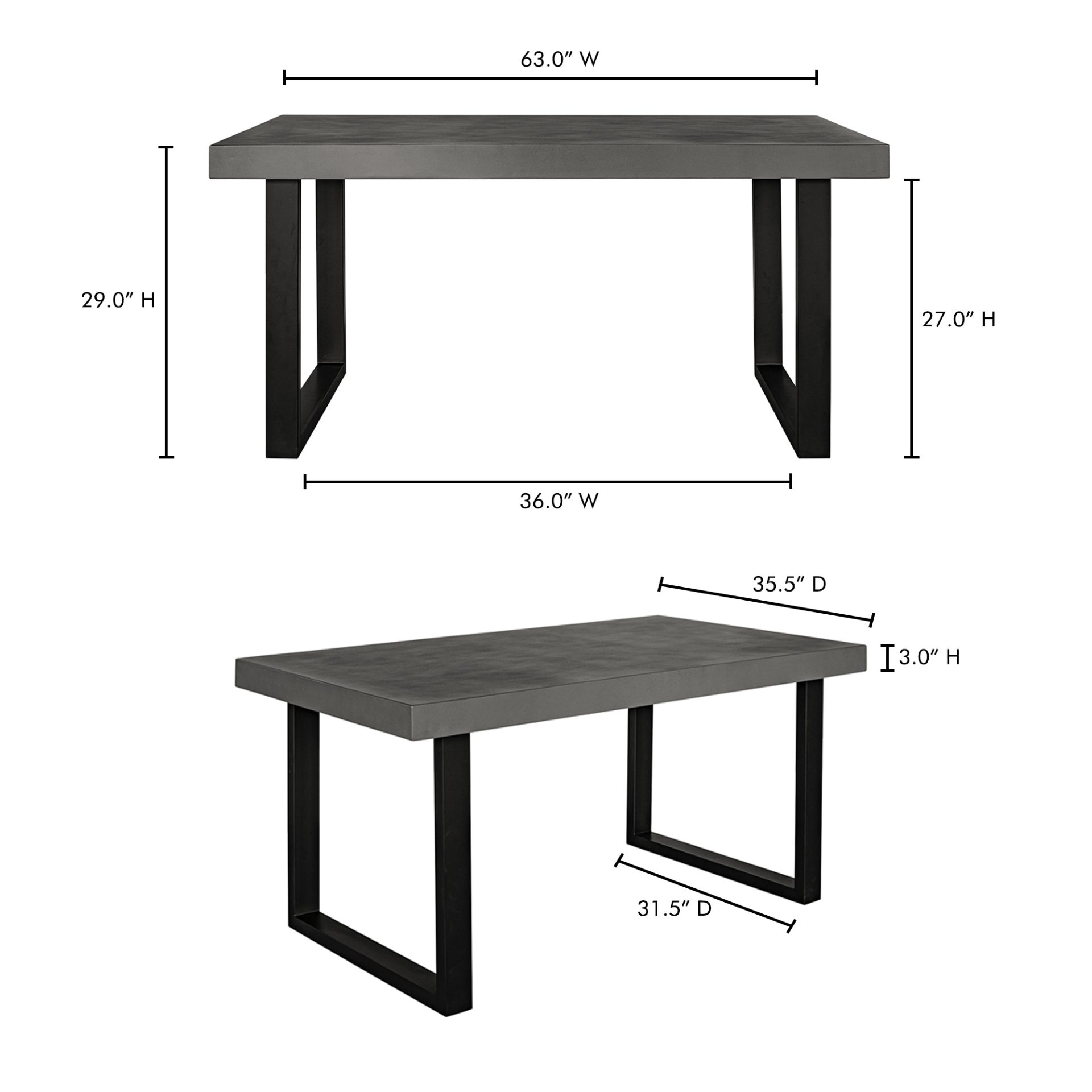 Perfect for indoors or out, the Jedrik is a cool cement and fiber table with black steel legs.