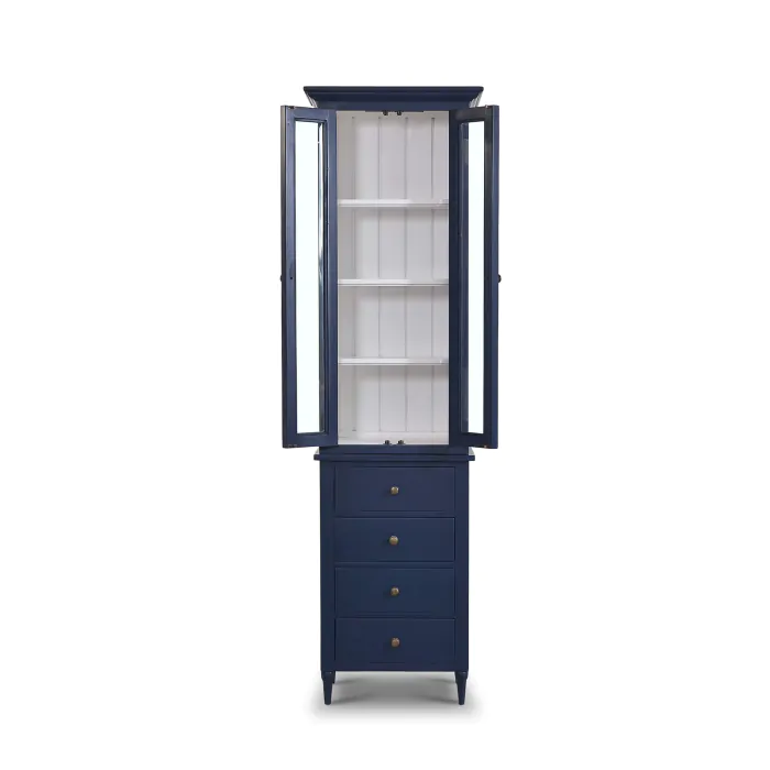 Offer optimal storage and style to the bathroom with this Jefferson Tall Bath Cabinet from the Mary Tudor collection. Delivering classic elegance, this mahogany cabinet features rustic cupped drawer pulls with a two-door cabinet accented with shelving and glass inset doors. This piece is offered with a vast array of finish and distress options to create a truly custom design.