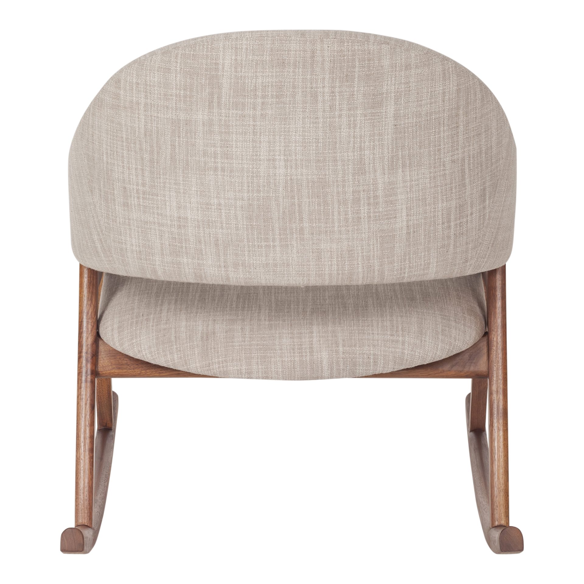 Scandi-style that you can sway with, brighten up a corner in your home with this solid walnut rocking chair. In light woven fabric, this occasional chair is perfect for winding down in with its generously wide, high comfort-cushioned seat and full, openwork back. Perfect for the nursery, living room, or bedroom, the deep to-and-fro swing will remind you to take some time for yourself, have a deep breath, and move into your daily rituals with ease.