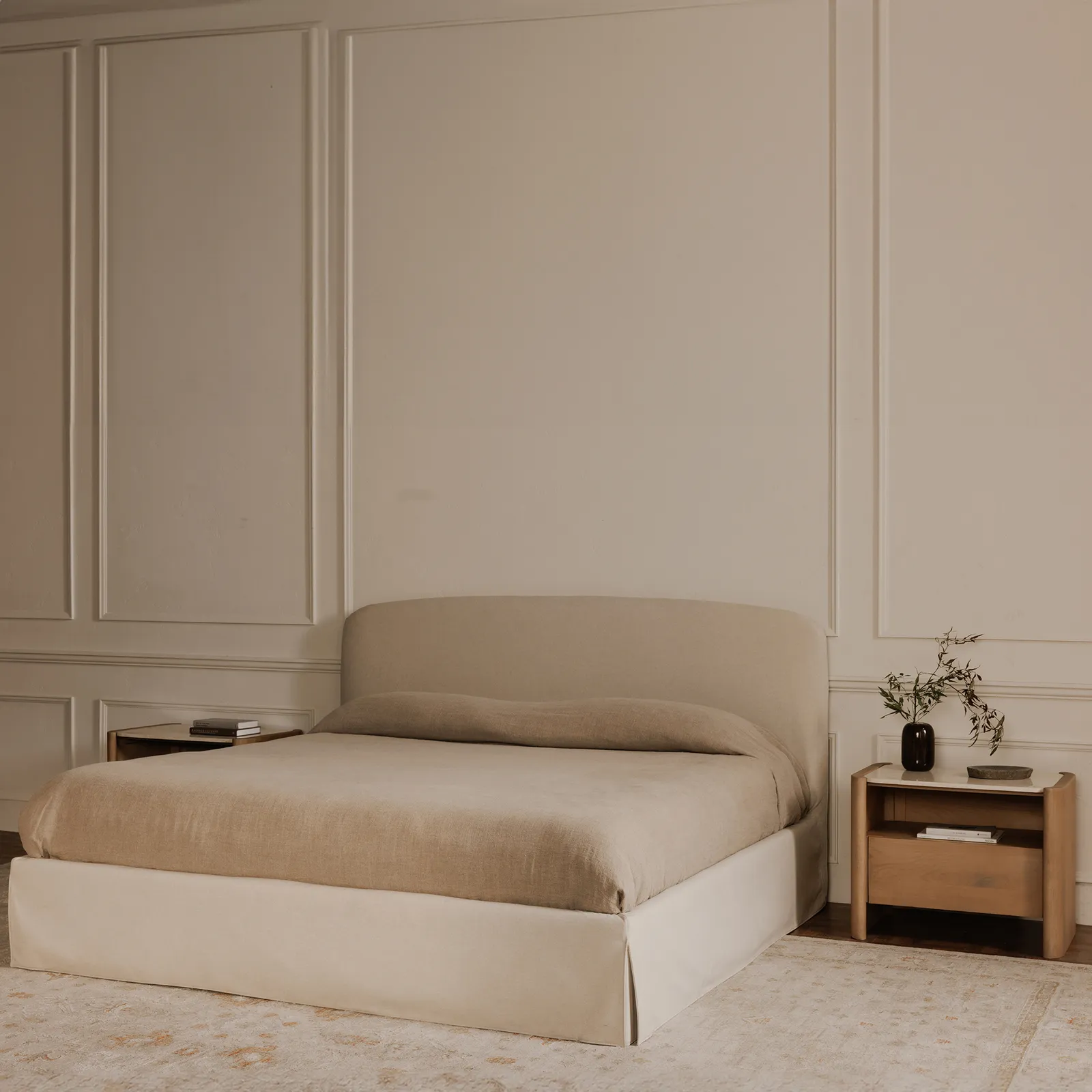 The Joan bed is more than meets the eye, with a hidden compartment that is tastefully innovative and easy to access. Beneath the mattress, a hydraulic system reveals ample storage space neatly tucked away, while a fully removable slipcover allows easy cleaning. The upholstered frame features the same fabric as the slipcover, so it can also be used on its own, providing two easy options to create the same classic look.