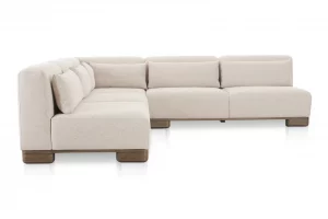 Designed with modular components that expertly function as standalone pieces or as part of modular configurations, the June collection is all about versatility. Wrapped in warm-toned, textured performance fabrics and elevated by oversized oak veneer legs, this piece combines everyday living and understated elegance. Built for ultimate relaxation — the plush feather and fiber fill, along with lumbar toss cushions, offer ultimate comfort. Consists of 3 modular parts: 2 slipper and 1 corner chair for easy switch around.
