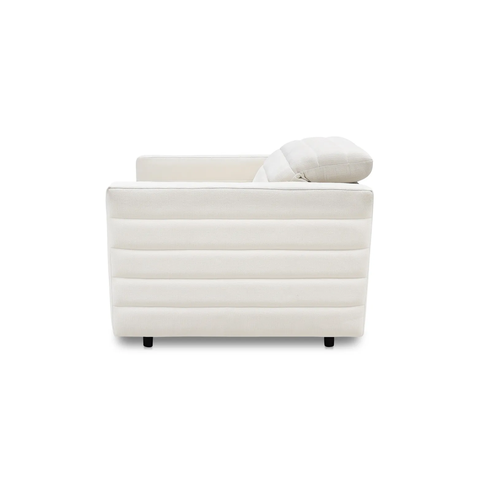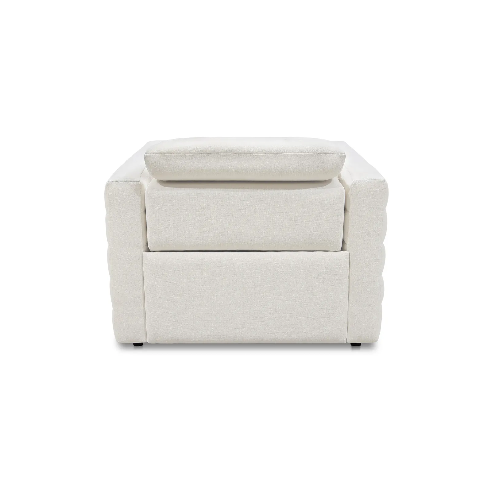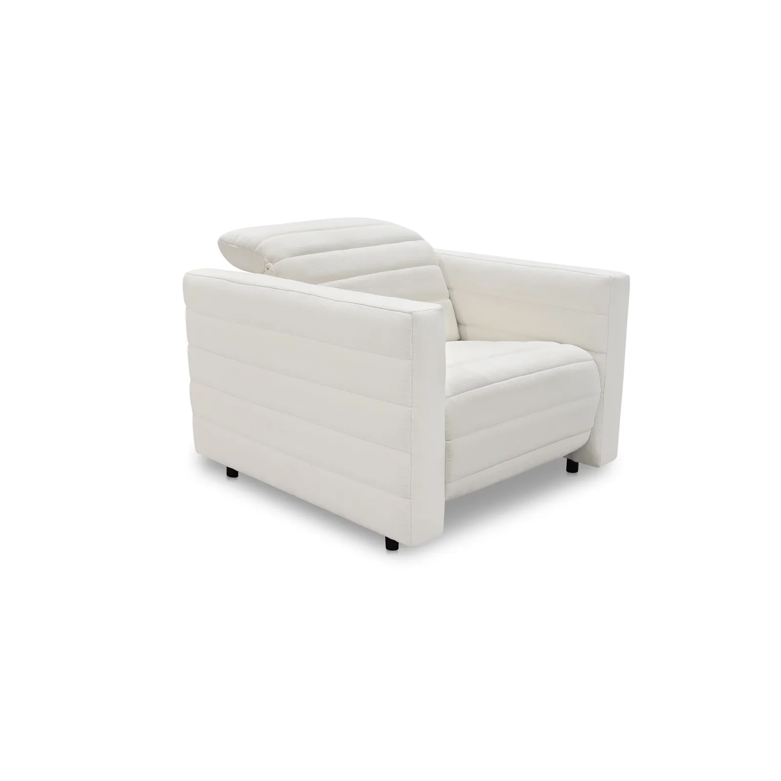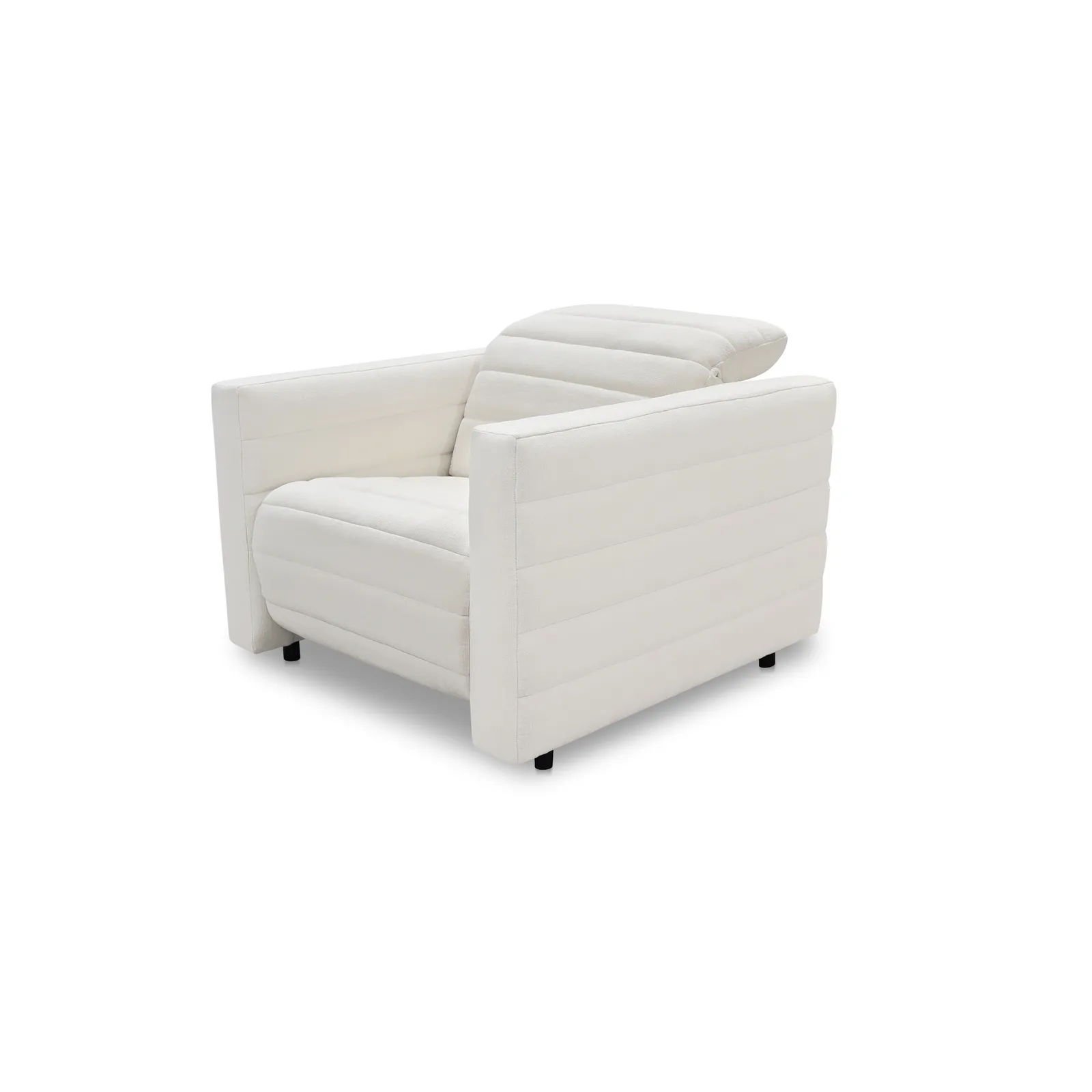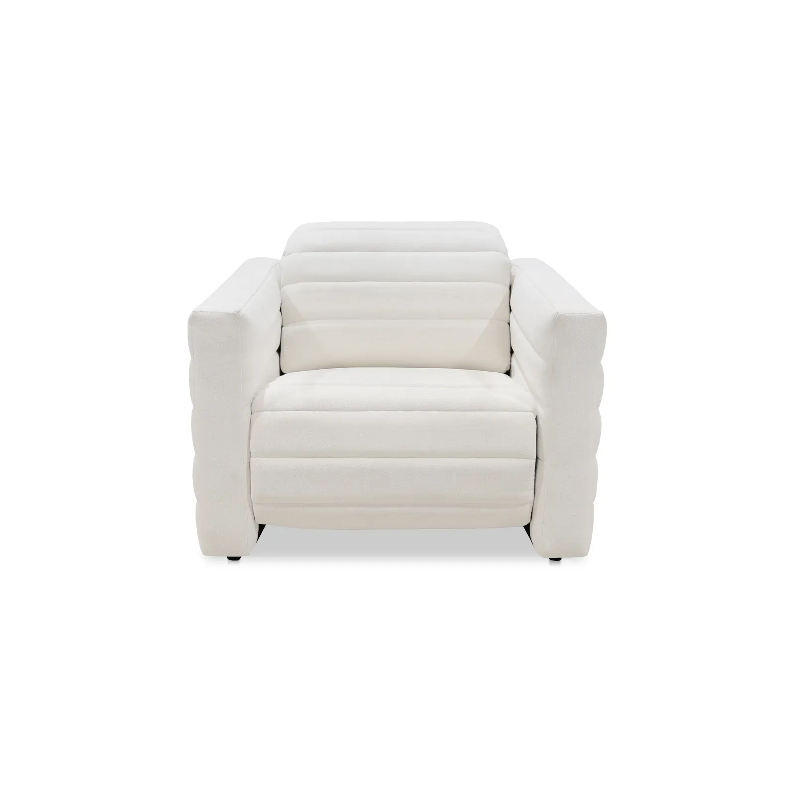 Wrapped in soft chenille, the Juno power recliner chair’s sleek silhouette and horizontal channel detailing exude modern elegance. Hidden buttons effortlessly transition between positions, while the adjustable headrest offers personalized support.