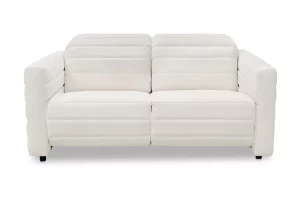 Wrapped in soft chenille, the Juno power recliner sofa’s sleek silhouette and horizontal channel detailing exude modern elegance. Hidden buttons effortlessly transition between positions, while the adjustable headrest offers personalized support.