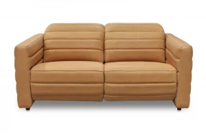Wrapped in top-grain leather, the Juno power recliner sofa’s sleek silhouette and horizontal channel detailing exude modern elegance. Hidden buttons effortlessly transition between positions, while the adjustable headrest offers personalized support.