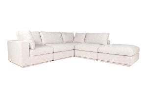 An everyday modular marvel. The Justin dream modular sectional is all about options, so sizing and space-fitting are up to you until you find the perfect arrangement for this contemporary modern design! Outfitted in a linen-blend upholstery that’s gentle to the touch with bouncy, high-density foam seating to cozy you and the whole family in comfort. A versatile design for any sized space, Justin is available in a corner chair, slipper chair, and stylish ottoman.