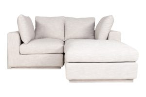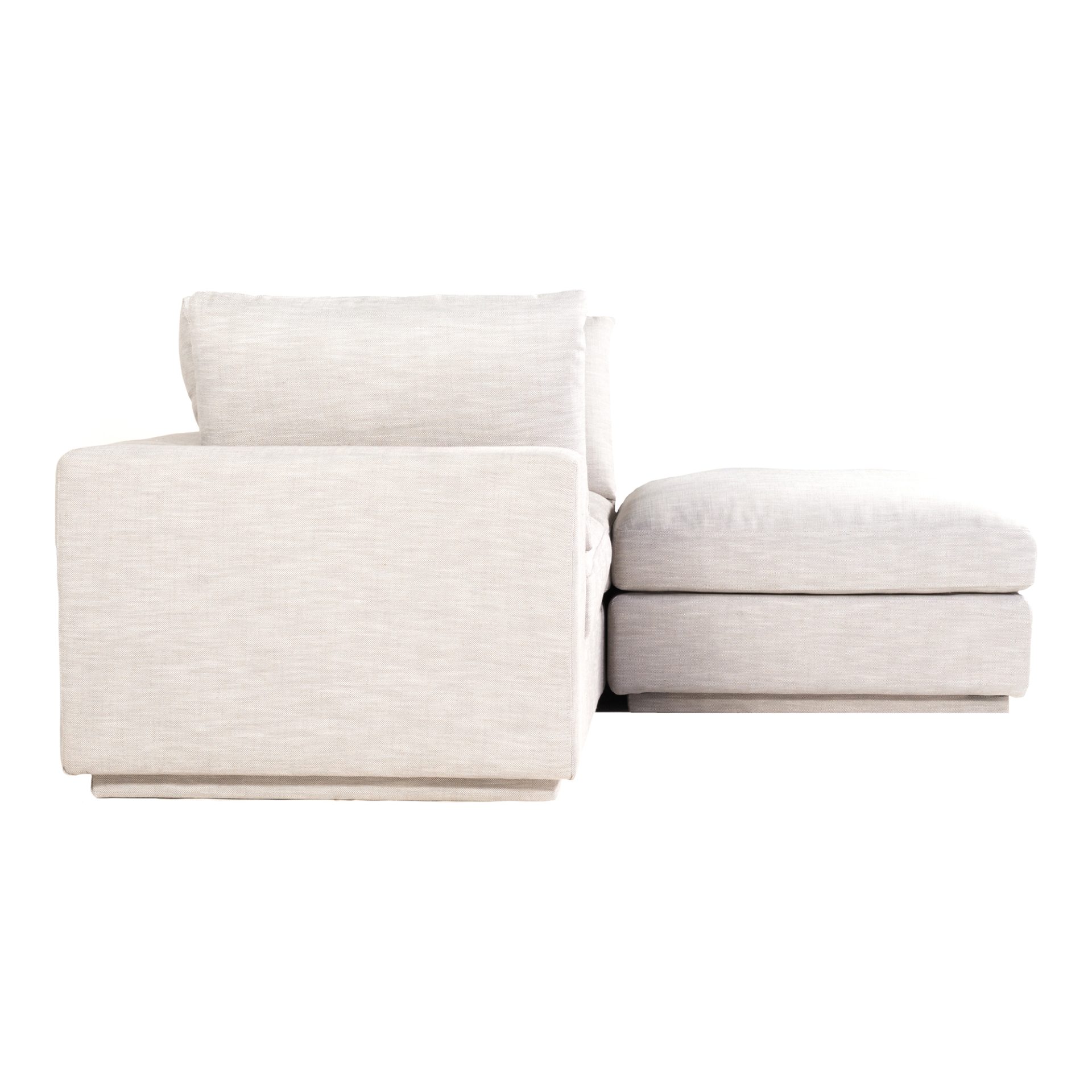 An everyday modular marvel. The Justin nook modular sectional is all about options, so sizing and space-fitting are up to you until you find the perfect arrangement for this contemporary modern design! Outfitted in a linen-blend upholstery that’s gentle to the touch with bouncy, high-density foam seating to cozy you and the whole family in comfort. A versatile design for any sized space, Justin is available in a corner chair, slipper chair, and stylish ottoman.