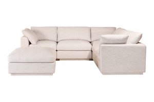The Justin modular sectional is the ultimate seating area. It showcases two large chaises in its contemporary modern design. The linen polyester upholstery makes this sectional soft and cozy and its high-density foam cushioning is surely made to last. It’s perfect for casual movie night or fun hang out spot for the family.