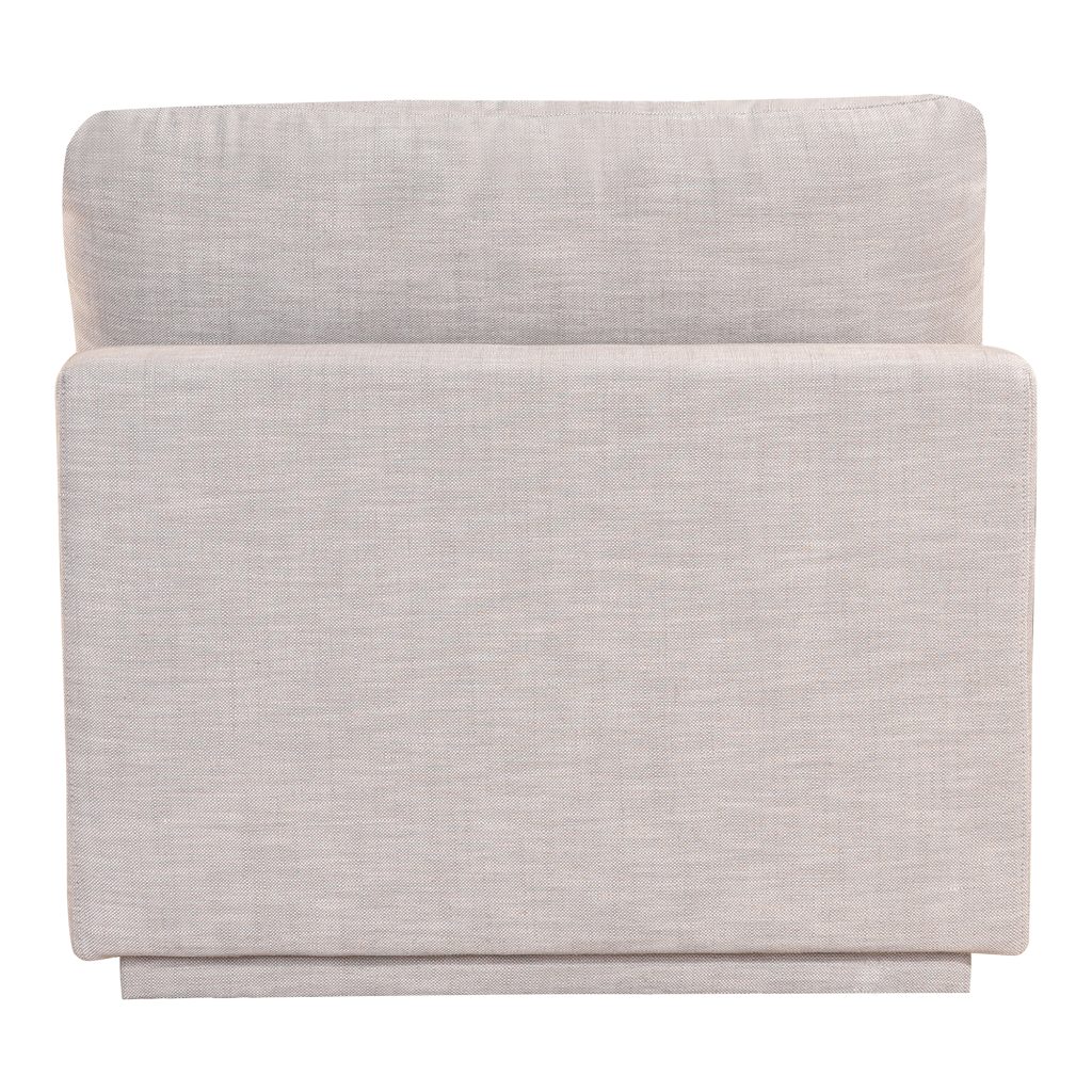The Justin Slipper Chair’s classic design and soft linen finish make it the perfect addition to your living room. Its pale taupe color matches well with costal and pastel color palates while keeping your living room bright and airy during every season. Place with the Justin Corner and ottoman for a seamless design.