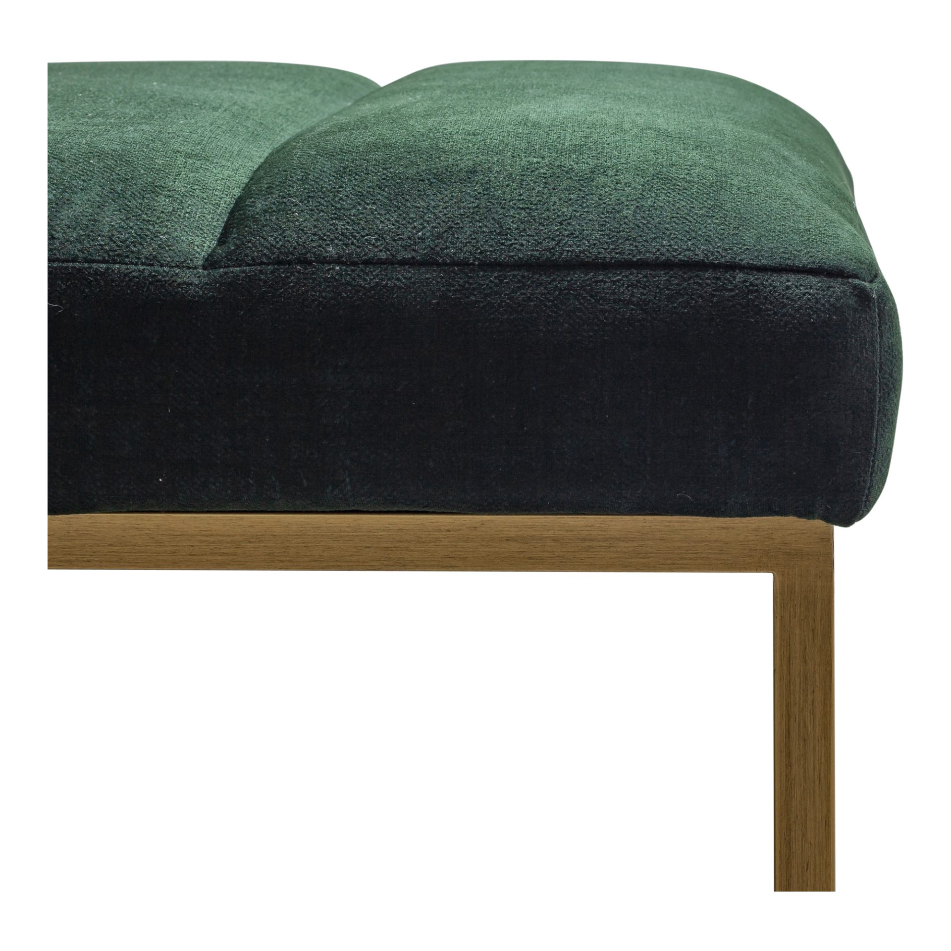 Sit down and relax on this modern classic. With plenty of seating room, the Katie bench offers foam padding, soft upholstery, and Pirelli webbing to ensure maximum comfort. A velvet finish and antique brass frame give it a retro look that blends seamlessly with different design schemes. A showstopper for entranceways.