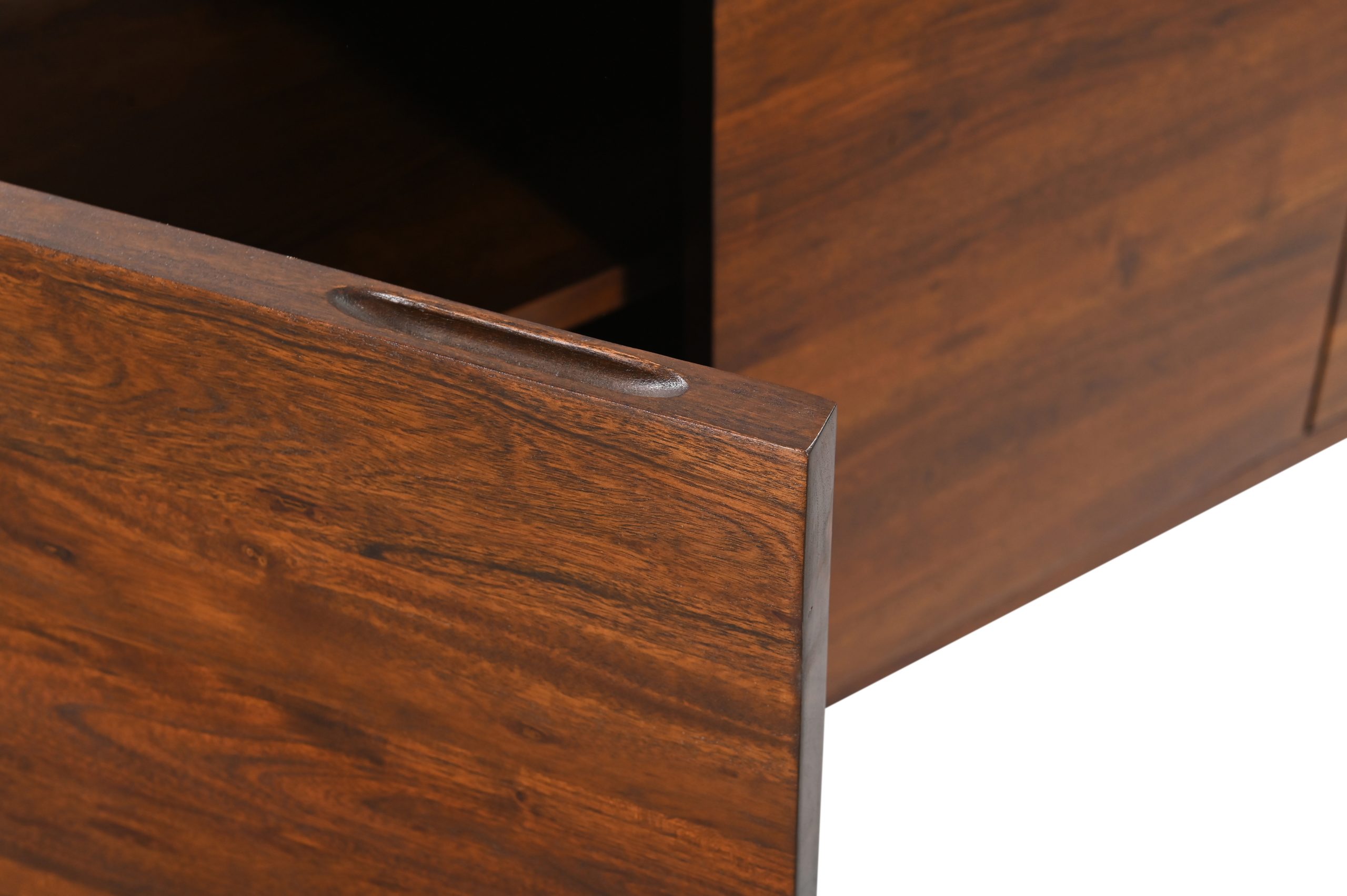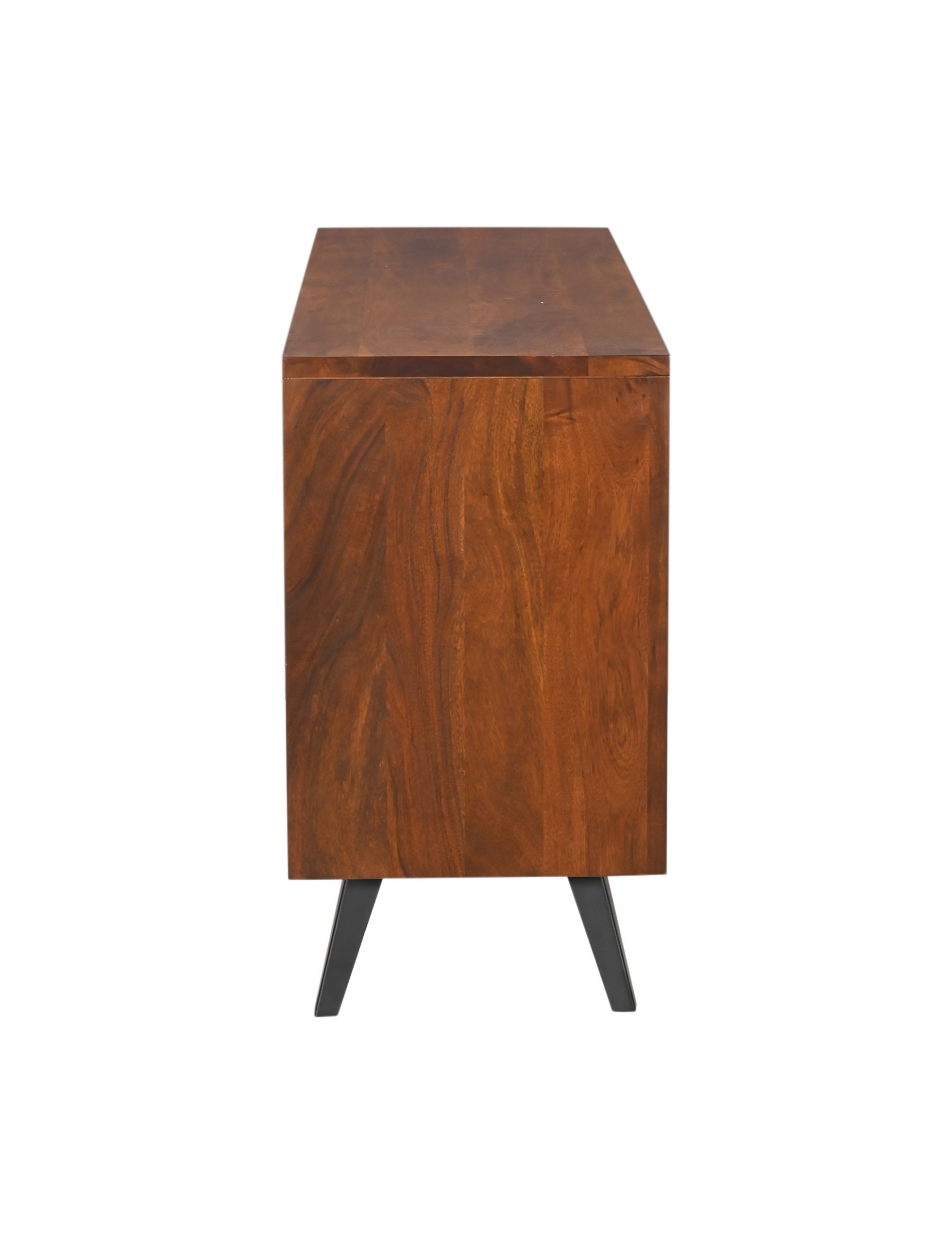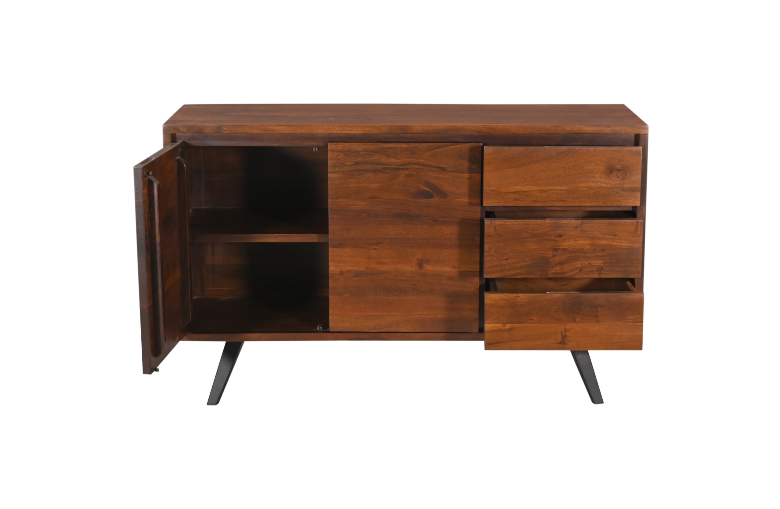 The Kennedy 54″ Sideboard in Walnut blends mid-century modern style with practical storage. Crafted from solid wood in a warm walnut finish, it features three side drawers and two doors that open to reveal an interior shelf‚Äîideal for organizing serveware, linens, or everyday essentials. Its clean lines and minimalist design make it a versatile piece for dining areas, entryways, or living spaces.