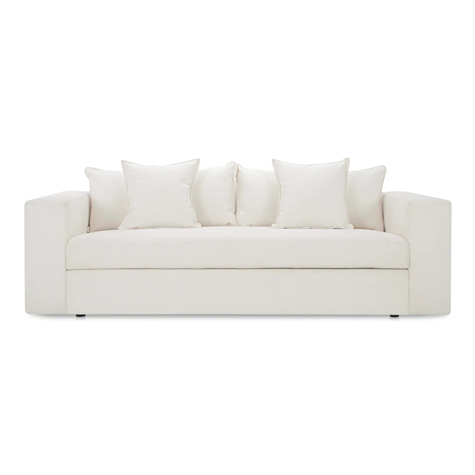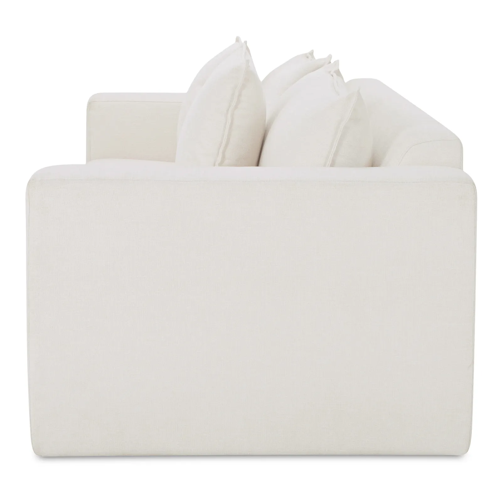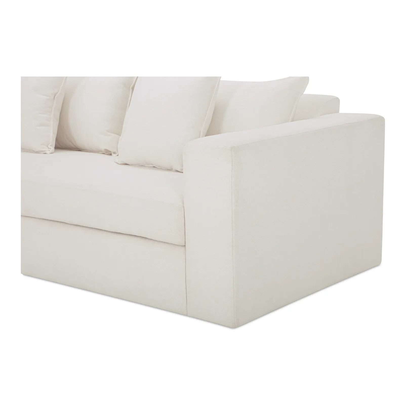 Movie nights to overnight guests—Kiran’s got you covered. With wide track arms and a crisp white velvet finish, this variation brings a lighter, more luminous touch to the classic sleeper sofa. A short queen mattress folds out smoothly using a Leggett & Platt mechanism. Built on a solid beech and plywood frame with fiber-wrapped cushions. Style by day, function by night—Kiran works both shifts.