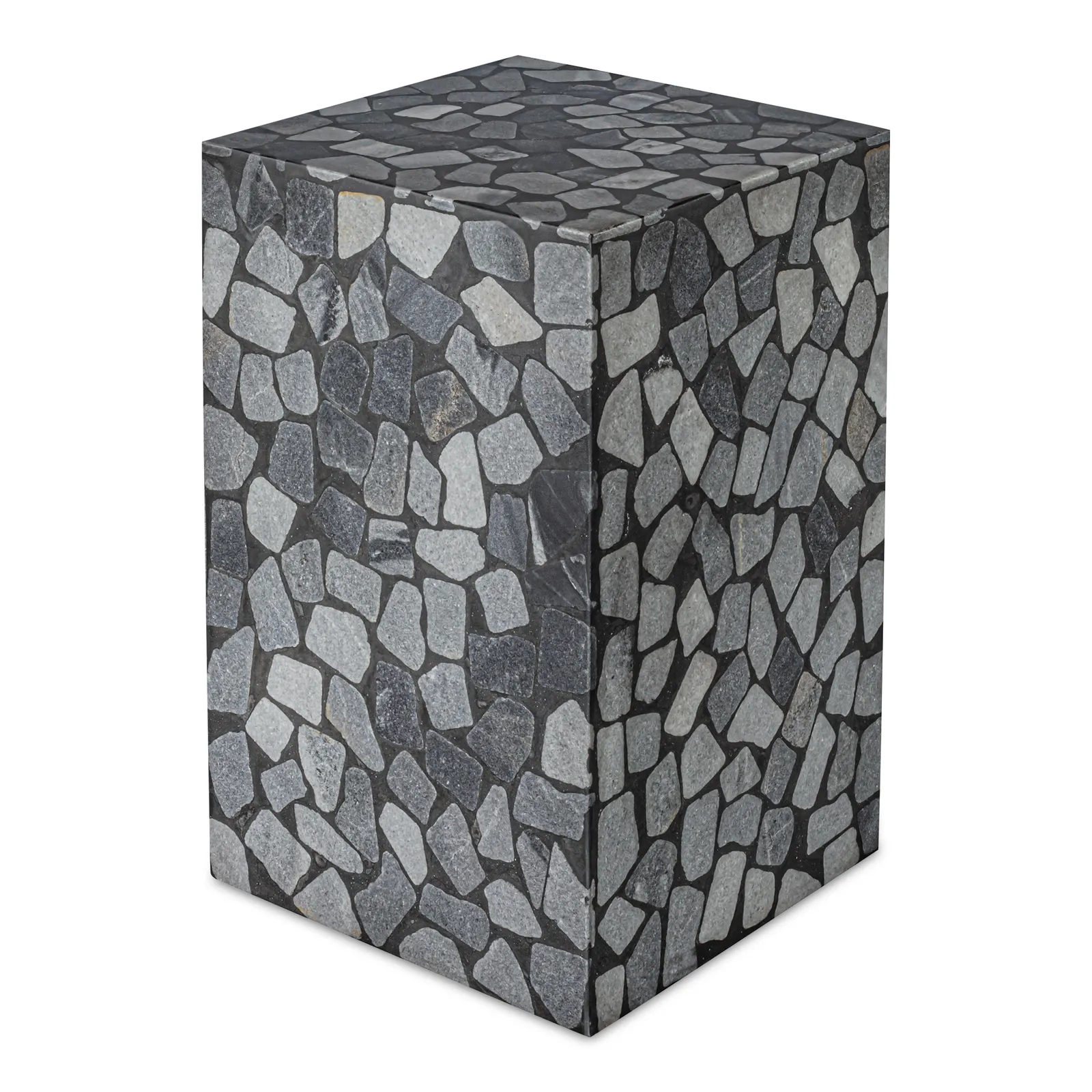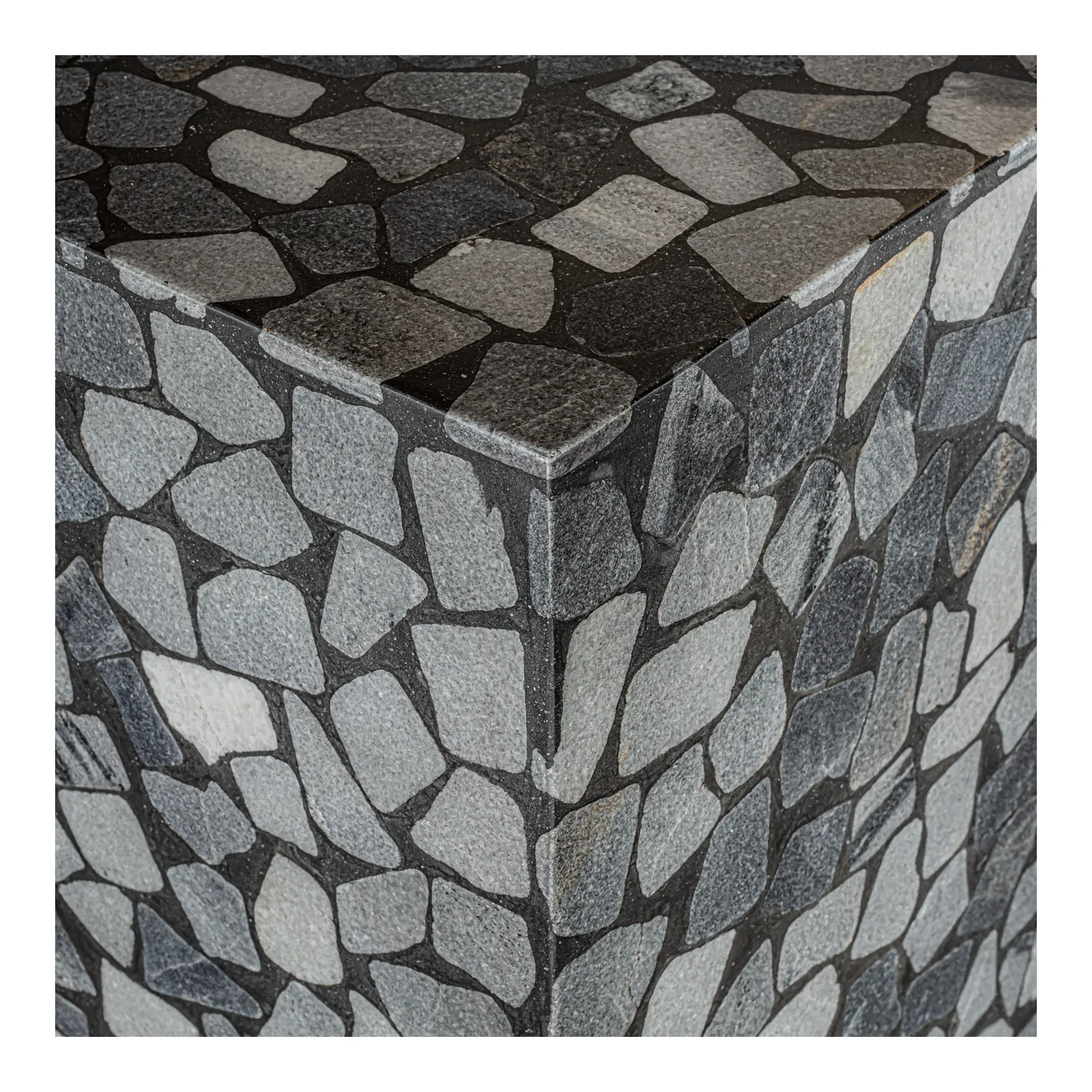 The Kiri outdoor side table features individual pieces of marble meticulously placed by hand in a concrete mold. After setting, the surface is polished to enhance the inherent luster of the marble amidst the sturdy concrete matrix. The deliberate arrangement allows the character of the natural stone and concrete blend to define its minimalistic design.