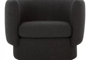 Soft as a cloud while exuding contemporary cool, the Koba chair comes in a distinct black with sumptuous form and curved lines. Curved lines, extra-comfort foam filling and solid wood construction make this chair soft and supple at the same time.