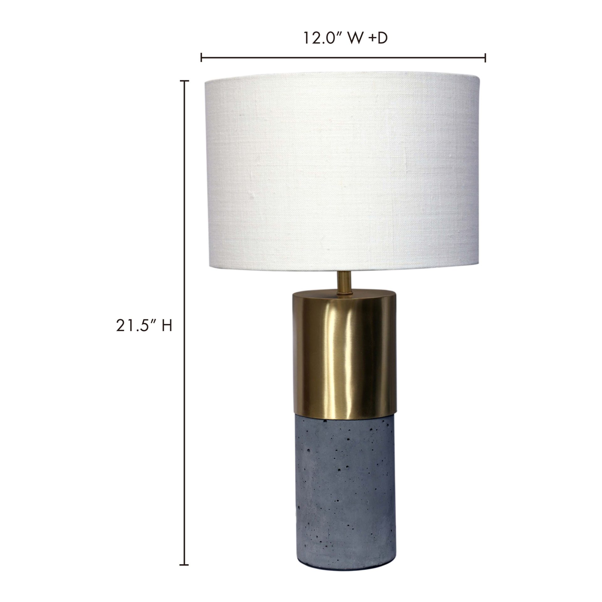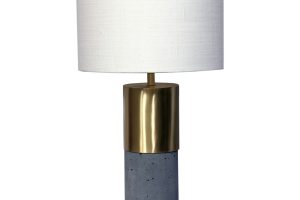 The Koko Lamp was designed for a chic home. A classy brass midway balances out its industrial cement base for an innovative look. A clean white lampshade rests confidently on top.