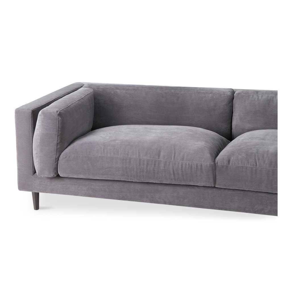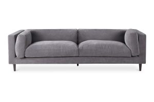 A sofa that feels like sinking into a big hug. The Lafayette Sofa features dark grey fabric upholstery filled with foam, feather, and fiber-fill for that luxurious feeling. It’s solid eucalyptus wood, plywood, and rubberwood legs make for a fabulous sturdy construction.