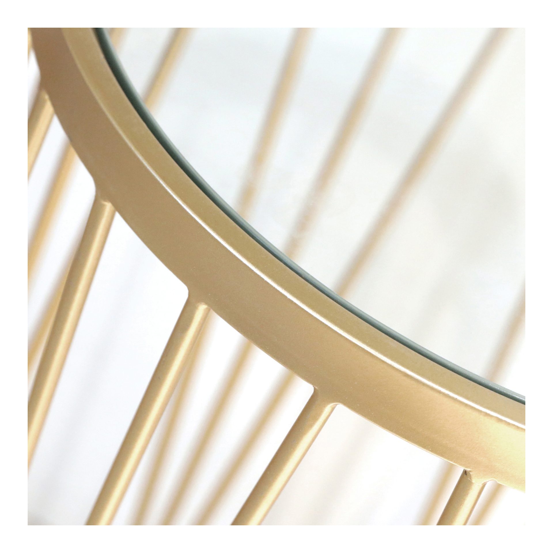 Art Deco luxe. The Lali accent table’s angular legs echo the details found in Art Deco architecture and art, lending a sense of movement to this piece. With a round tempered glass tabletop, the eye is drawn to the cleverly crafted frame, a perfect combination of minimalism and maximalism. From the simple materials of glass and metal, Lali is a living room accent ready to inspire thought and relaxation.