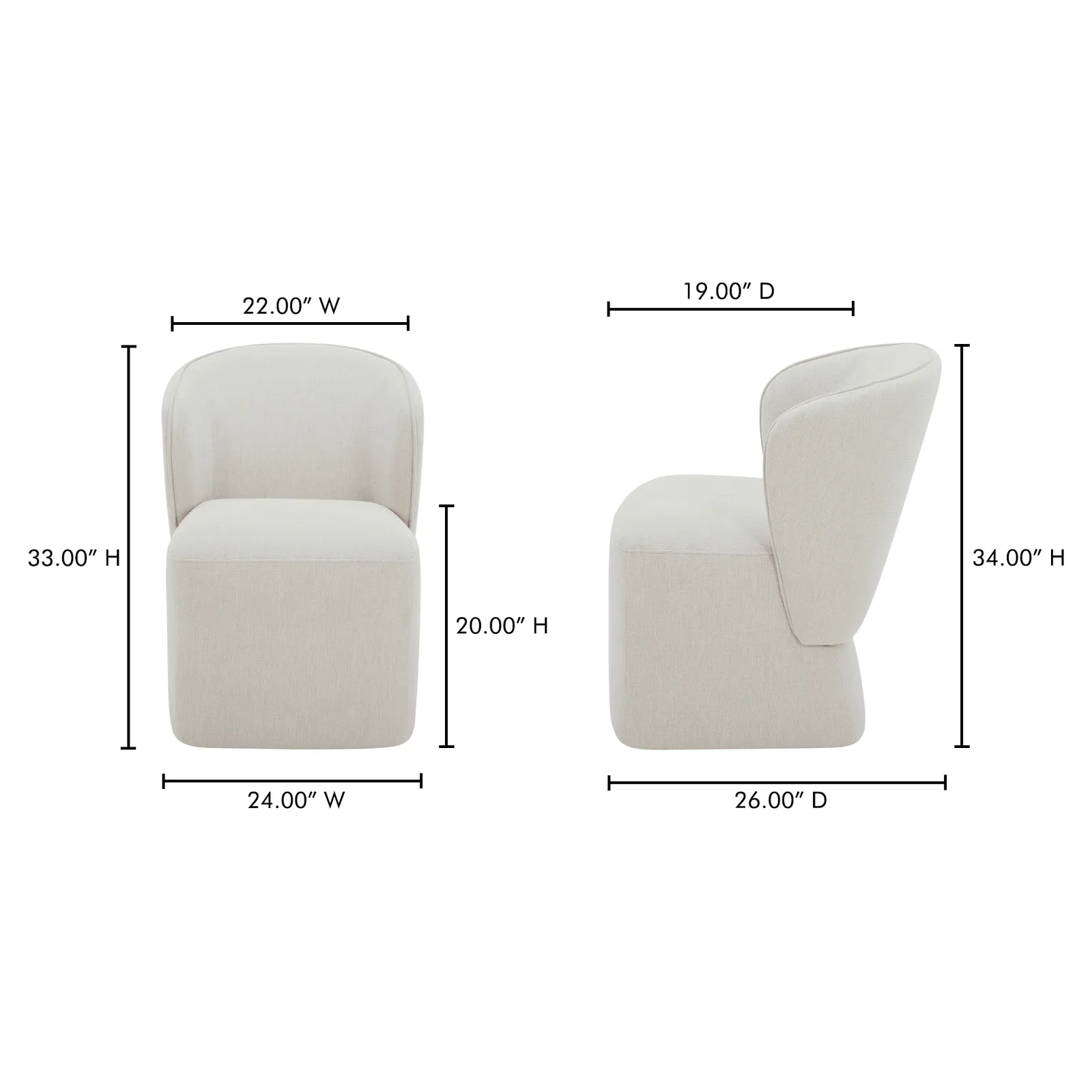 The Larson rolling dining chair is as much about comfort as it is about modern sensibility, with a generously padded seat and backrest, graceful silhouette, clean lines, curved back, rounded square seat, caster wheels and high-performance fabric upholstery that protects against stains, spills, and wear and tear.