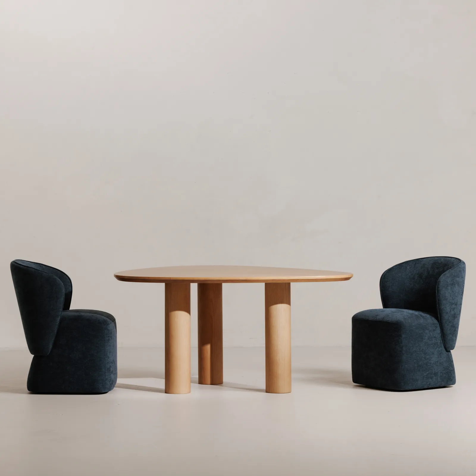 The Larson rolling dining chair is as much about comfort as it is about modern sensibility, with a generously padded seat and backrest, graceful silhouette, clean lines, curved back, rounded square seat, caster wheels and high-performance fabric upholstery that protects against stains, spills, and wear and tear.