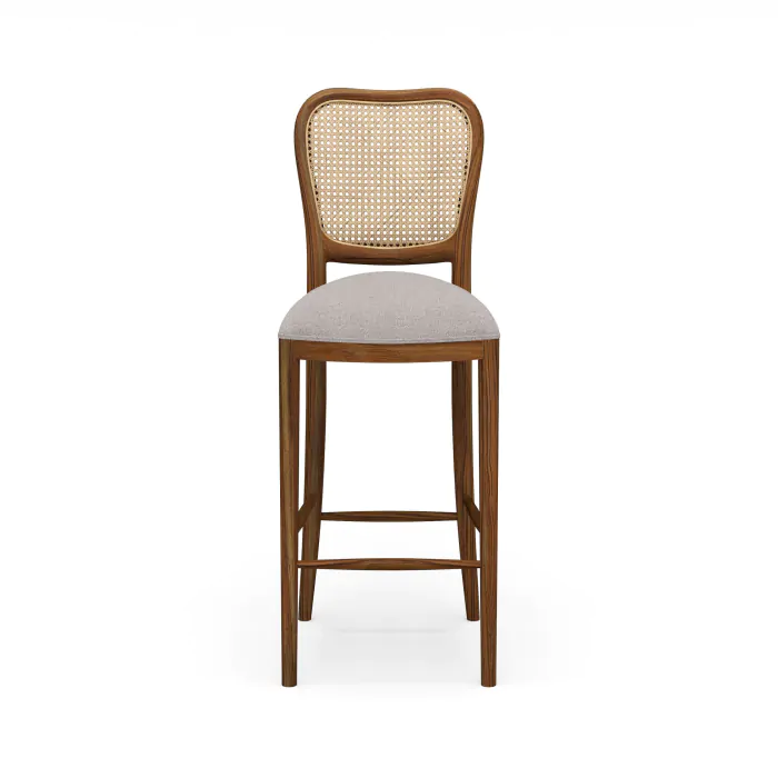 Laurna Teak Barstool w/ Upholstered Seat & Rattan Back