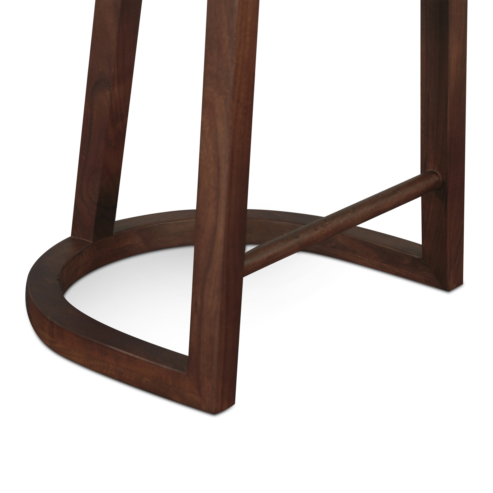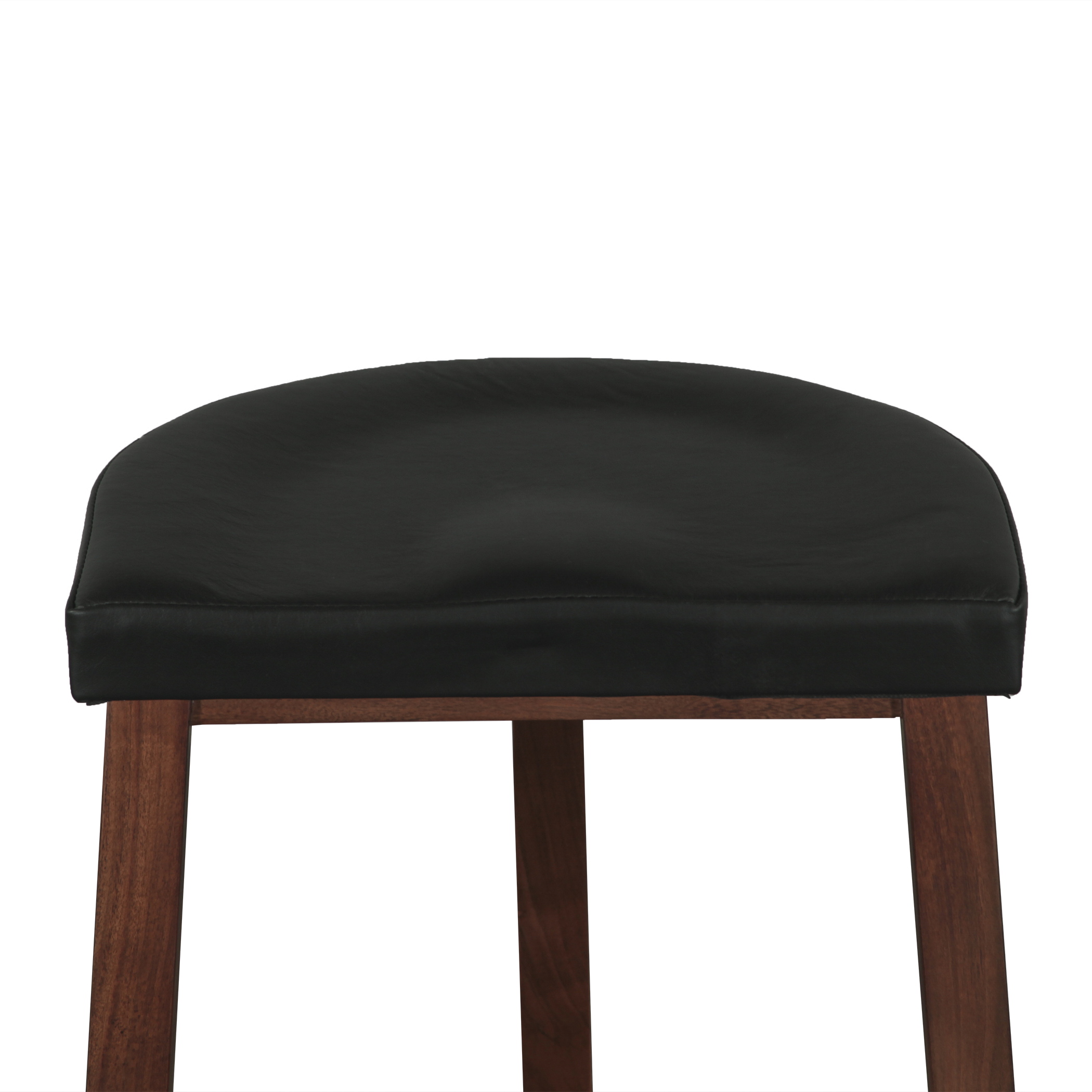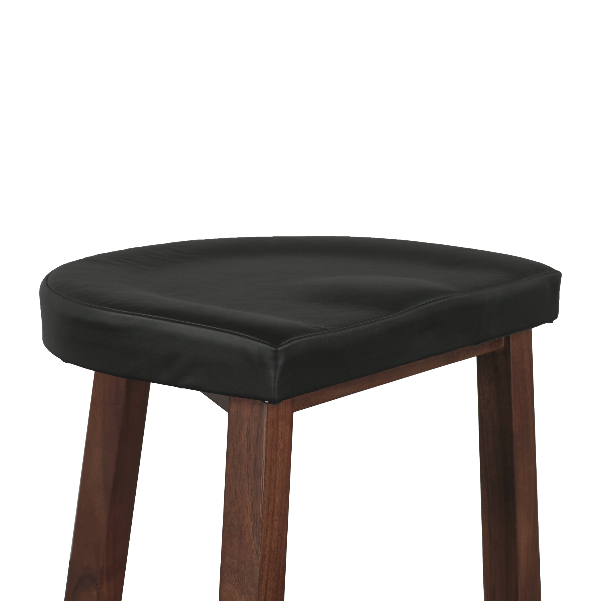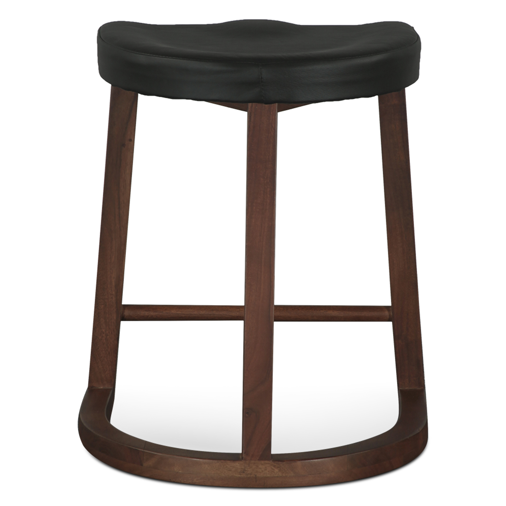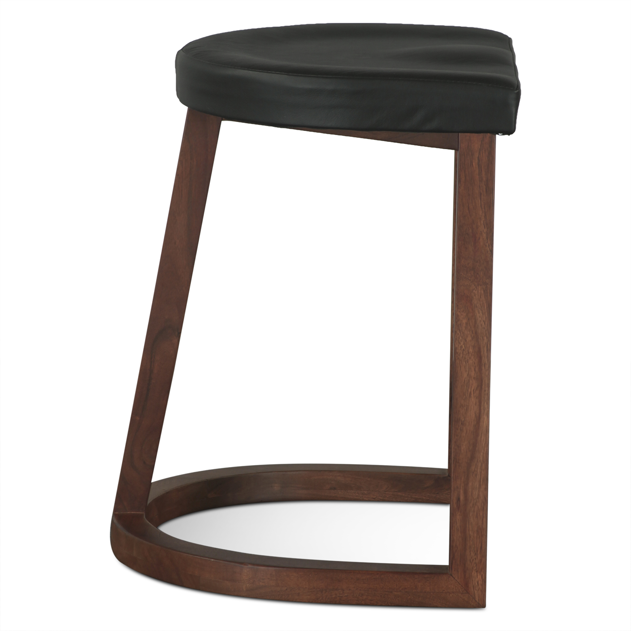 The Lenox Counter Stool in Walnut features a sleek, modern design with a rich walnut frame and a black leather seat. Its clean lines and cushioned seating provide both style and comfort, making it a perfect addition to any contemporary space.