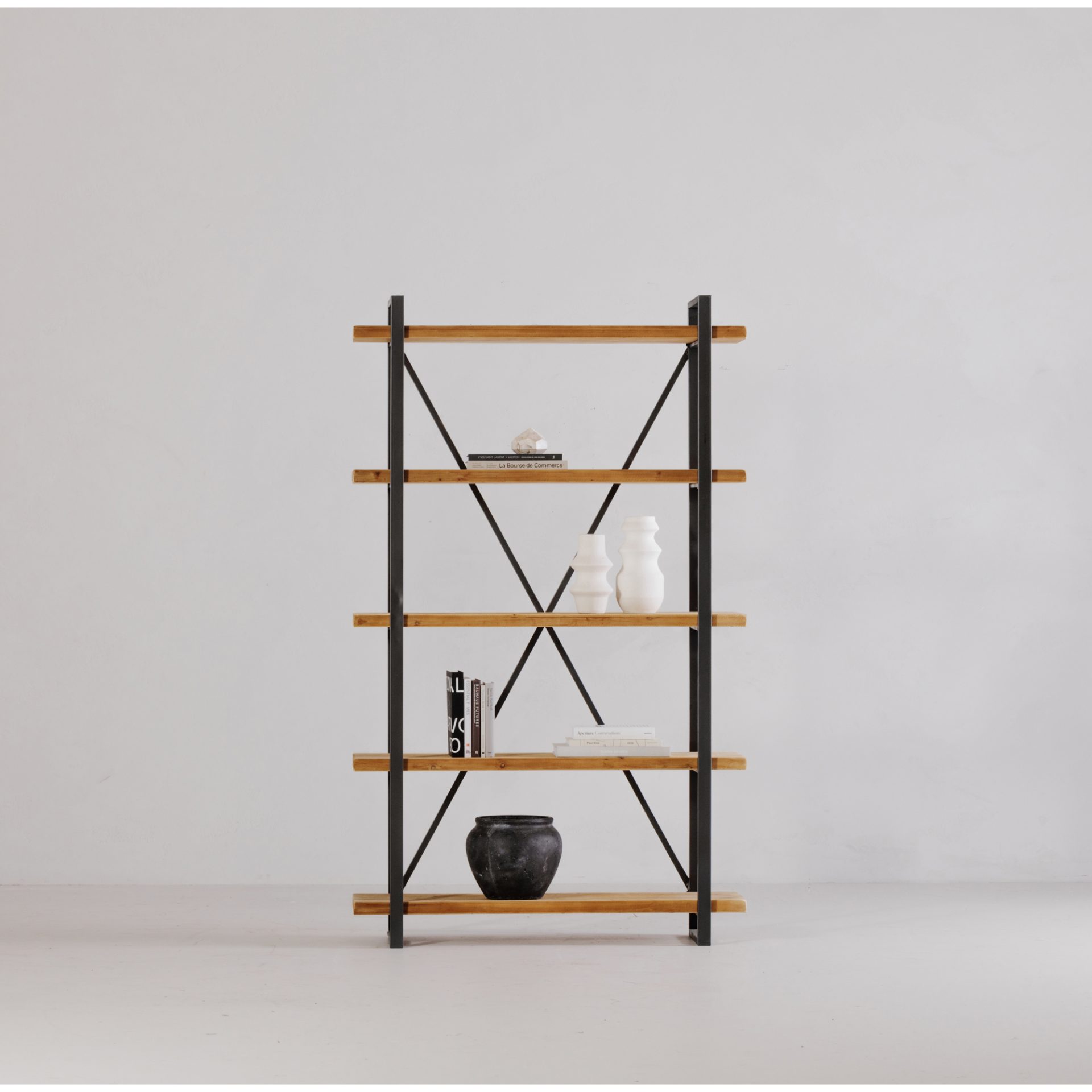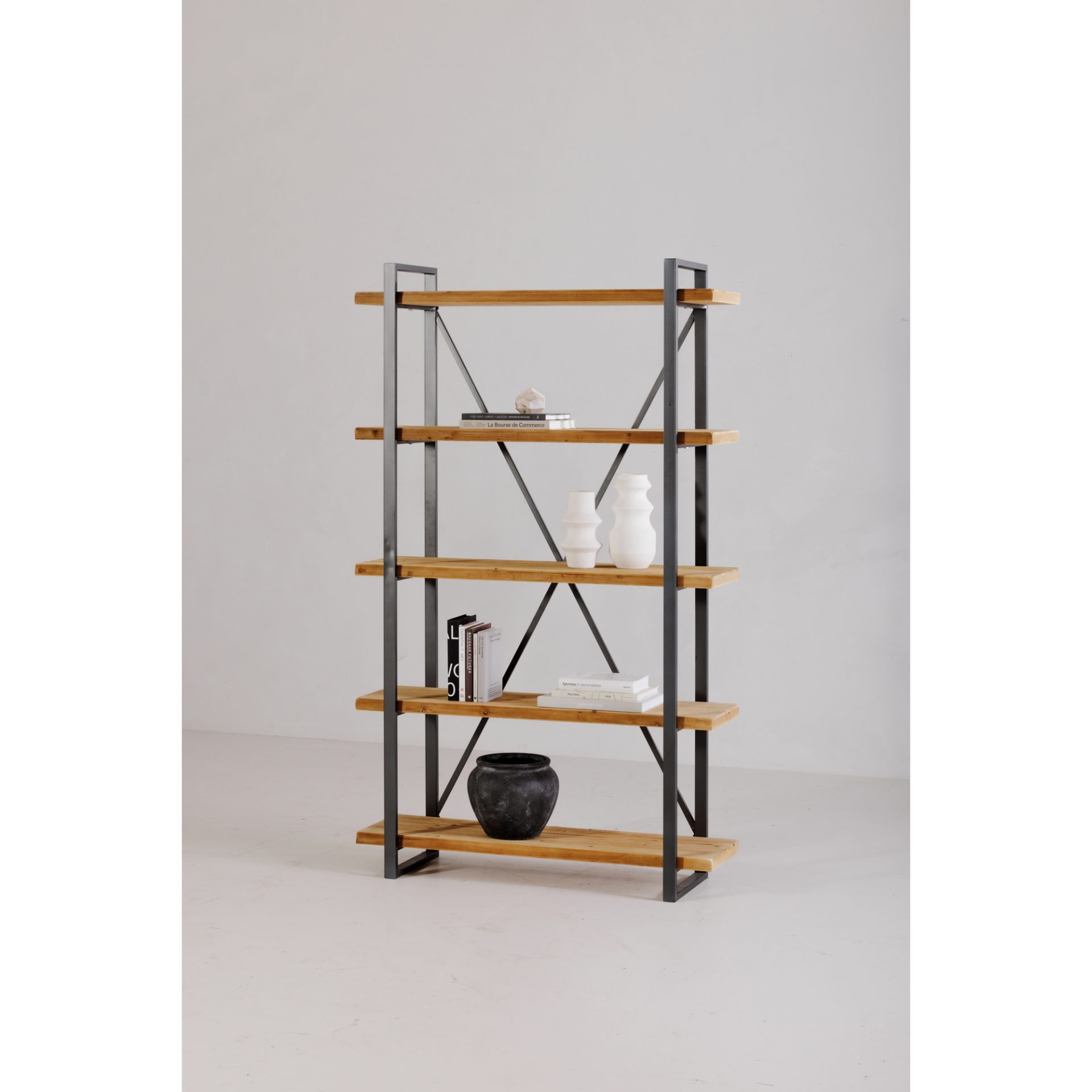 Storage has never been easier with the Lex 5 Shelf. Whether you are using the LEX as a bookshelf or a display case, its iron frame adds a subtle industrial rustic feel, while the solid fir shelves bring an organic natural hue to your space. Great for extra storage in your kitchen or dining area.