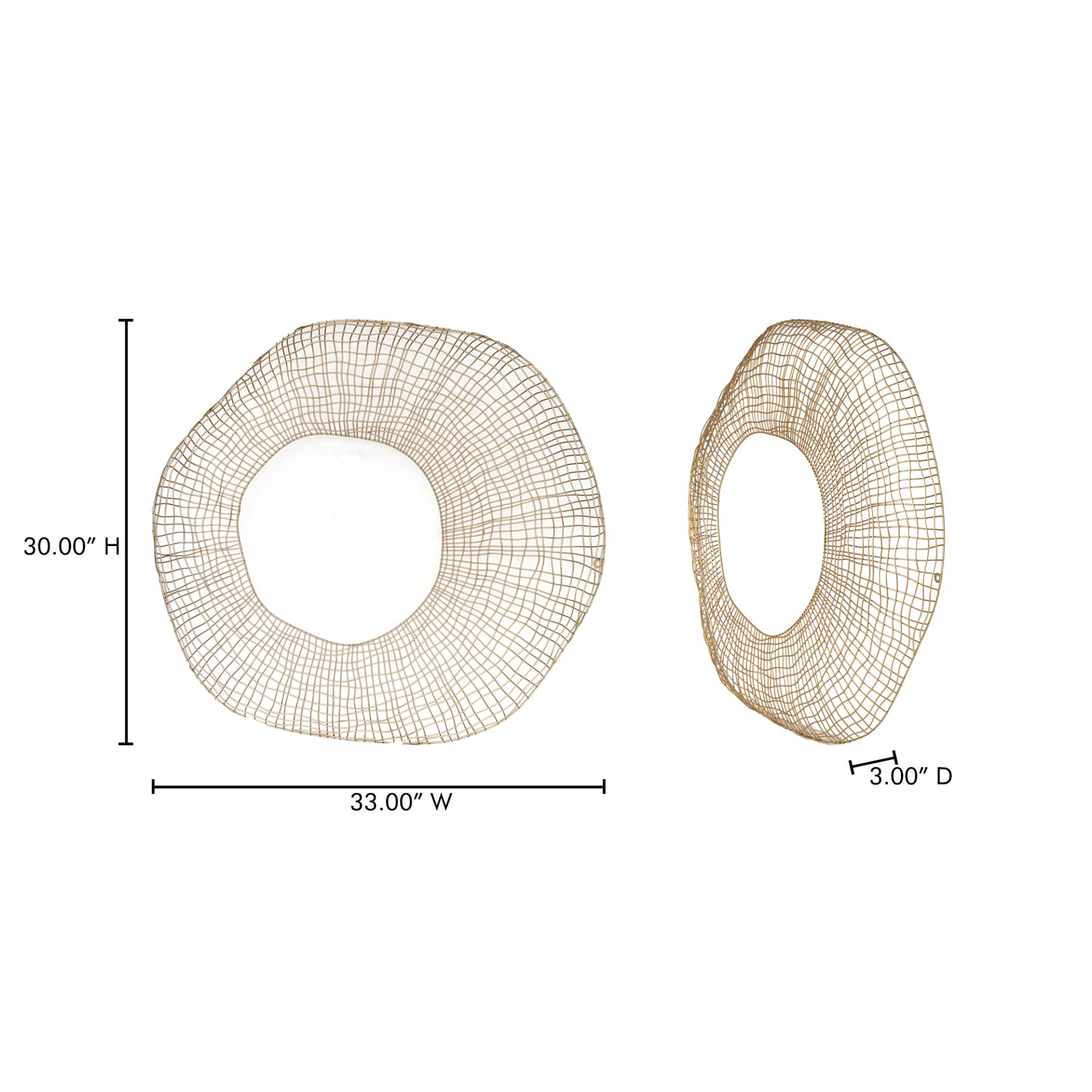 Large and lavish, this golden iron wall sculpture features an organic shape to add depth and accent to your home design.