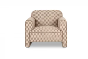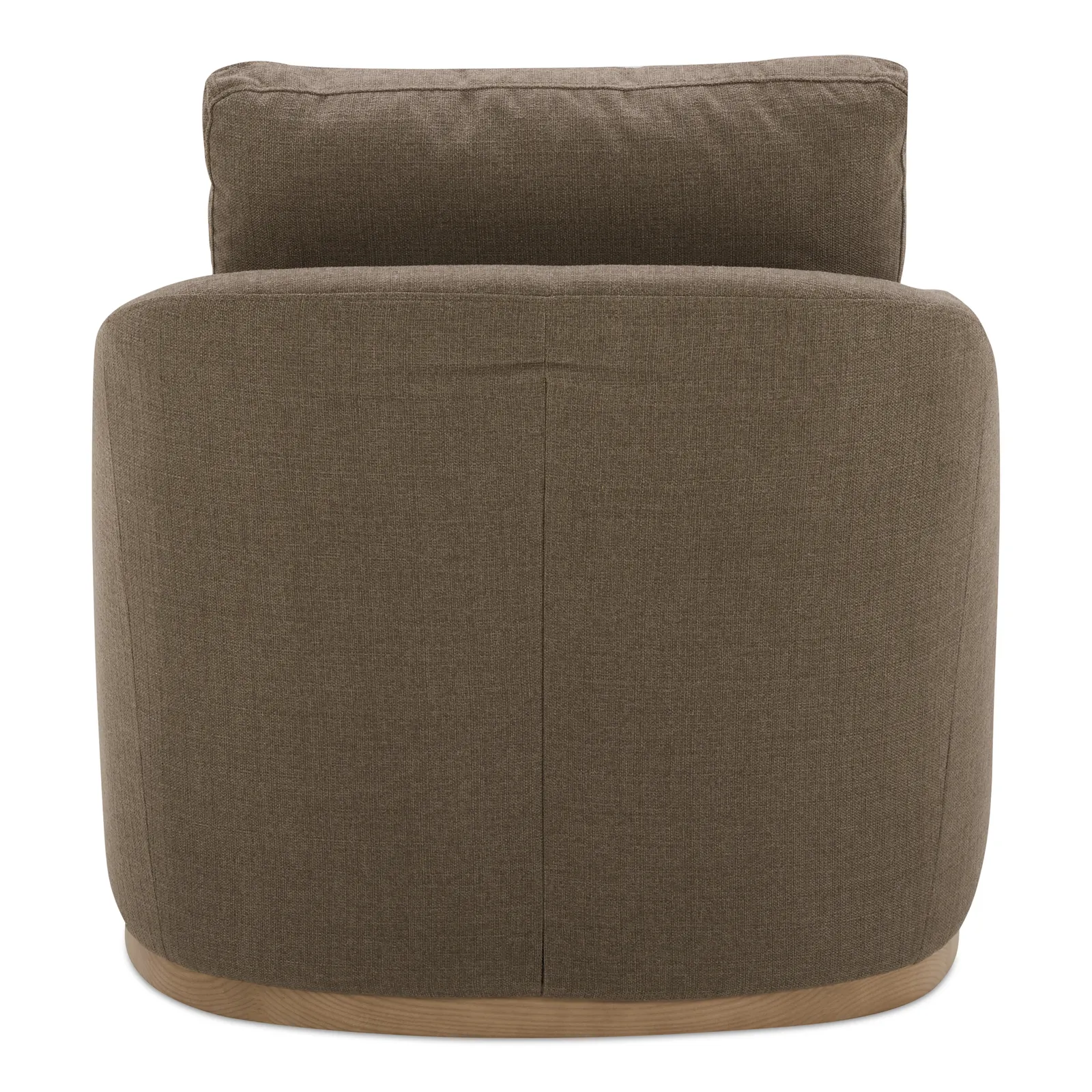 The Linden swivel chair features a curved barrel back paired with a generously sized toss cushion support. A smooth, solid wood base completes the look with a 360° swivel function for an updated, sophisticated feel.