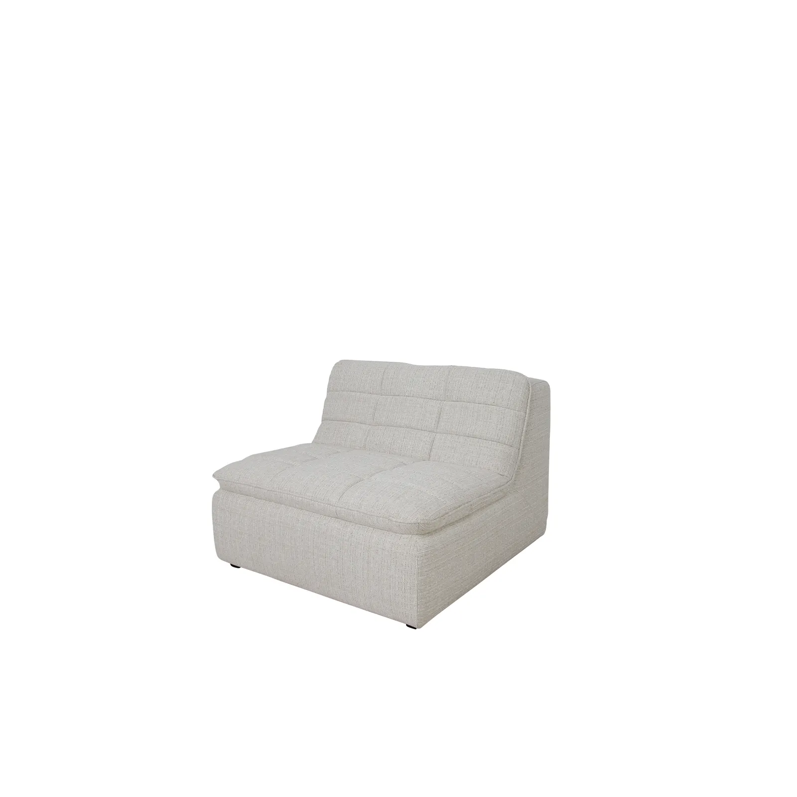 The Lino slipper chair adds vintage charm reimagined for modern sophistication. Inspired by 1970s modernist design, its distinctive grid-like channeling creates a captivating visual rhythm. Upholstered in a textured blend of viscose, linen, and cotton, this armless chair offers indulgent comfort with its plush, generously stuffed seat.
