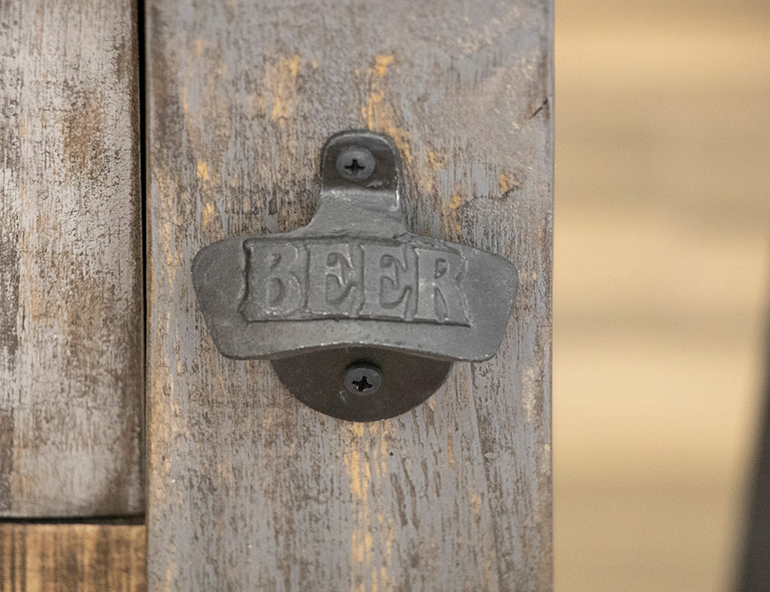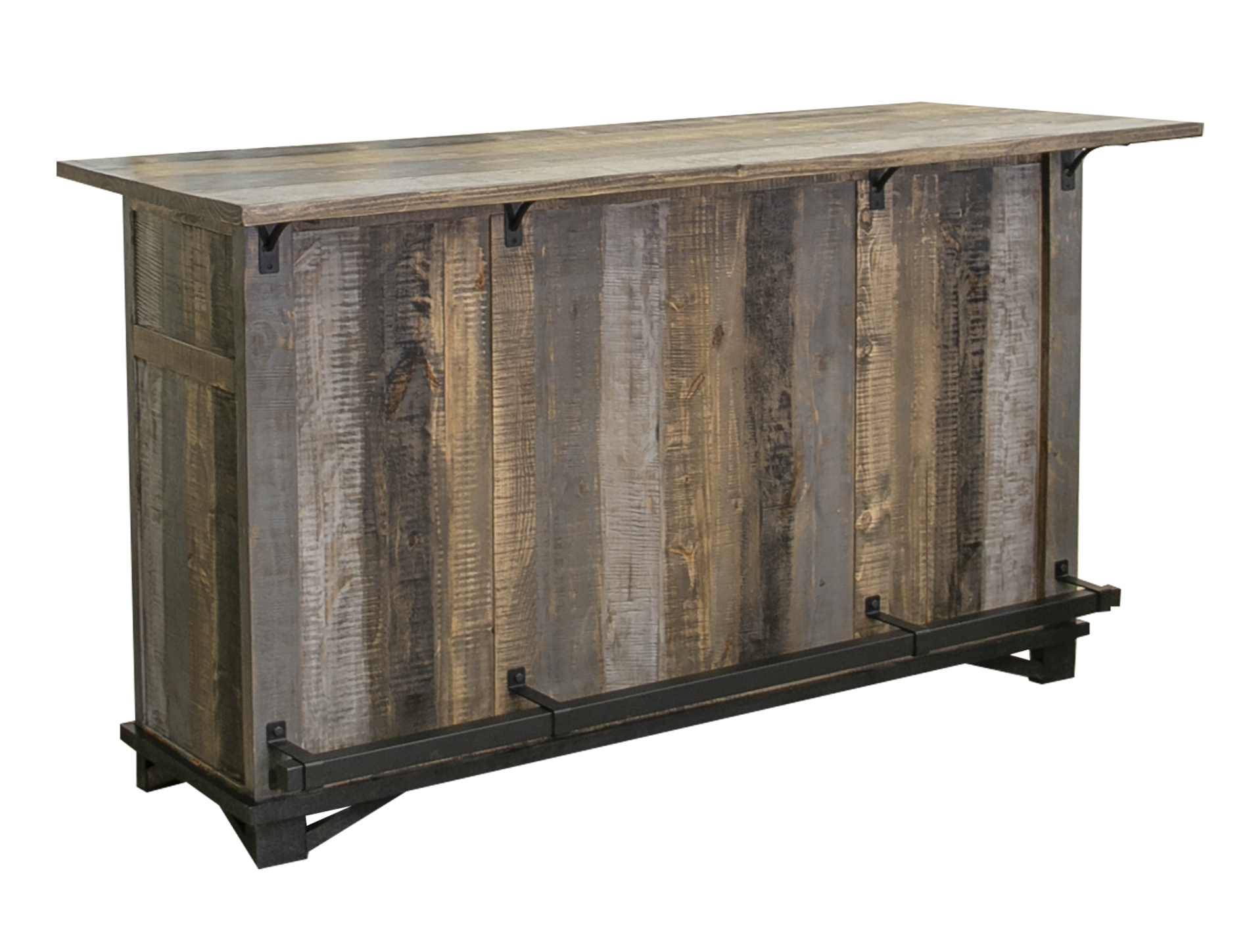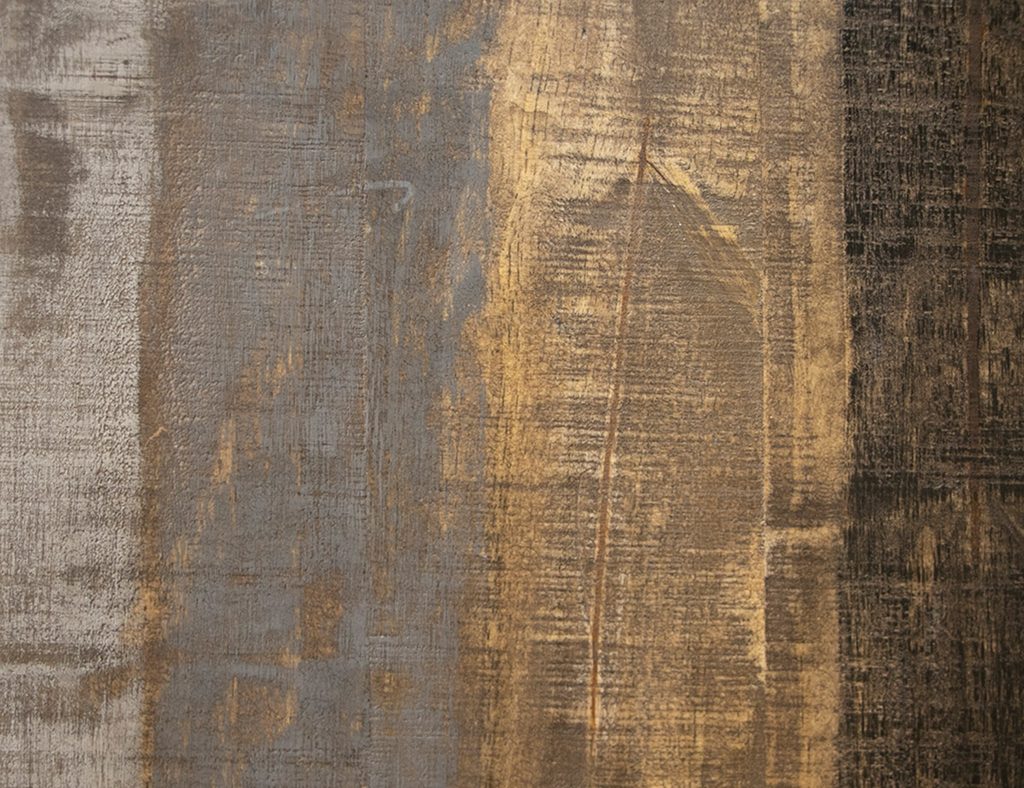 • Multi-step hand-painted water-based acrylic lacquer finish in gray and brown tones for an updated “reclaimed wood” look.