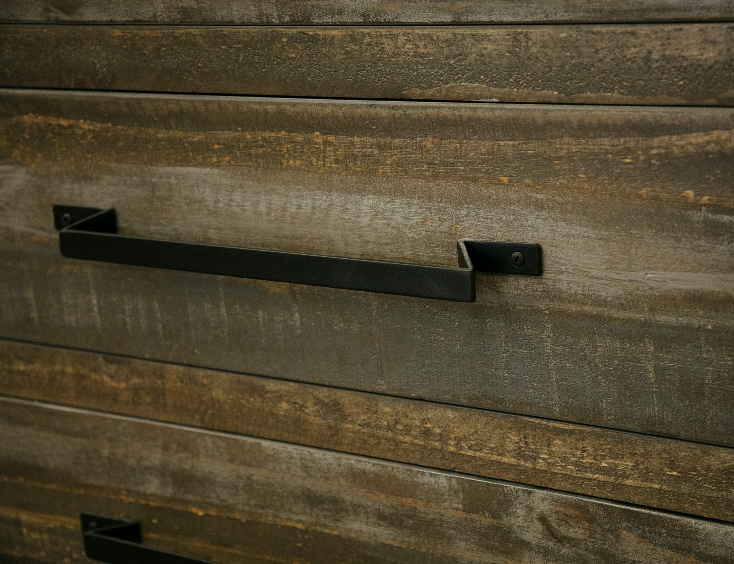 • The Loft Brown Collection is constructed using pine wood that has been hand-stained and distressed, complemented by hand-forged iron hardware. This beautiful collection features a wide range of high and low finish colors, making it a striking addition to any room décor you choose to design.
