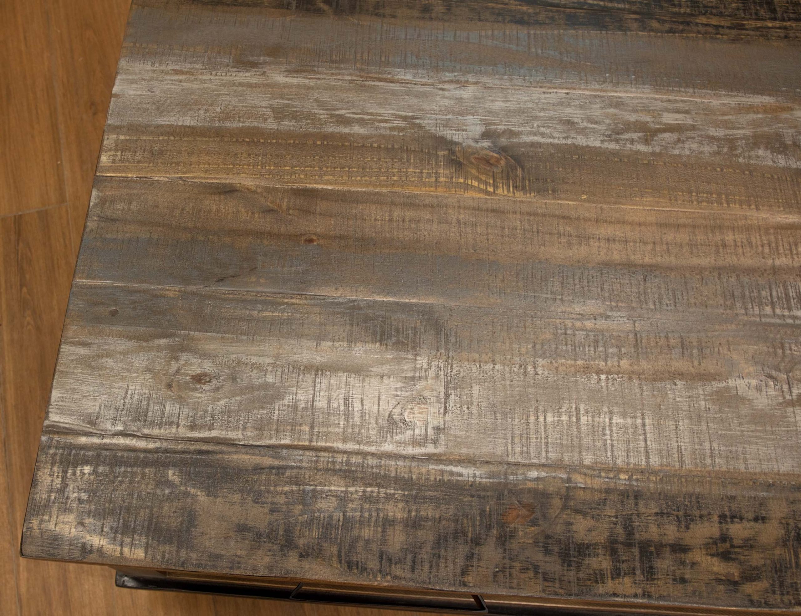 • Multi-step hand-painted water-based acrylic lacquer finish in gray and brown tones for an updated “reclaimed wood” look.