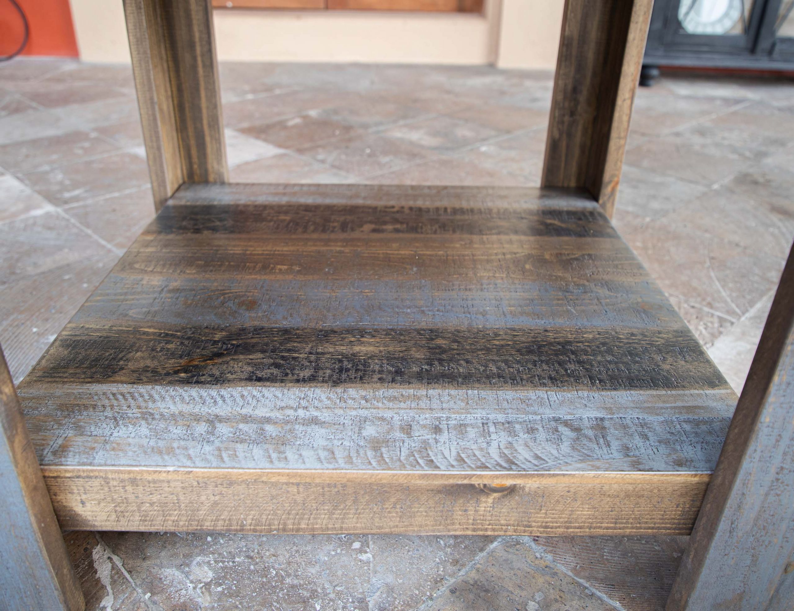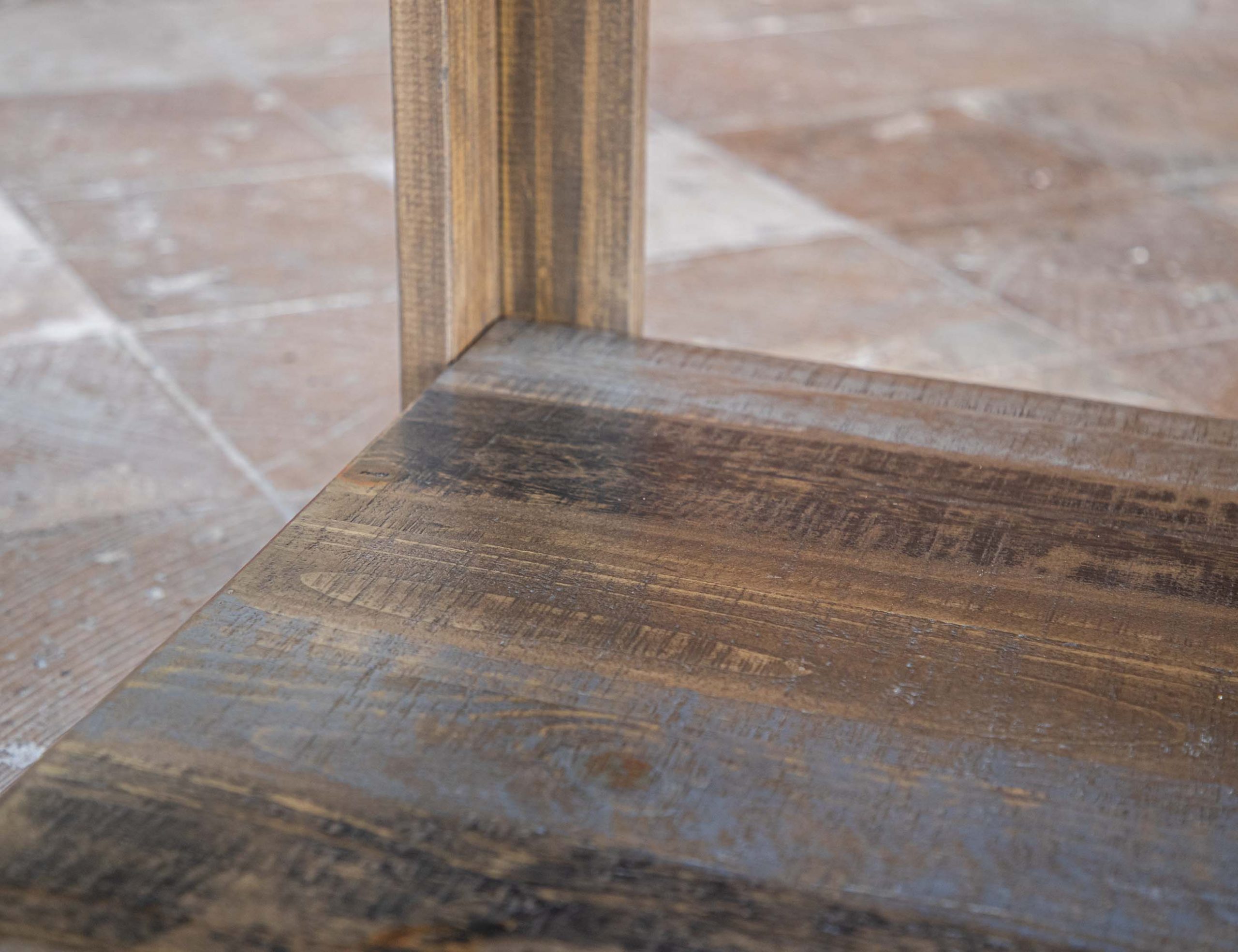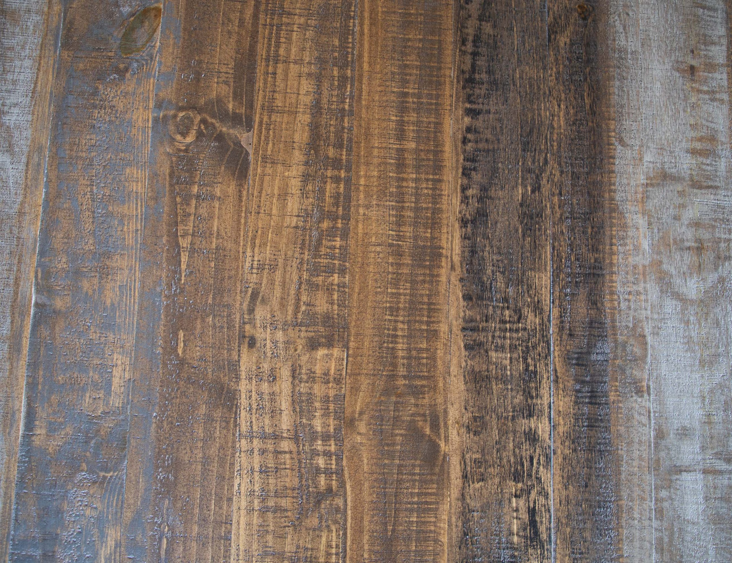 • Multi-step hand-painted water-based acrylic lacquer finish in gray and brown tones for an updated “reclaimed wood” look.