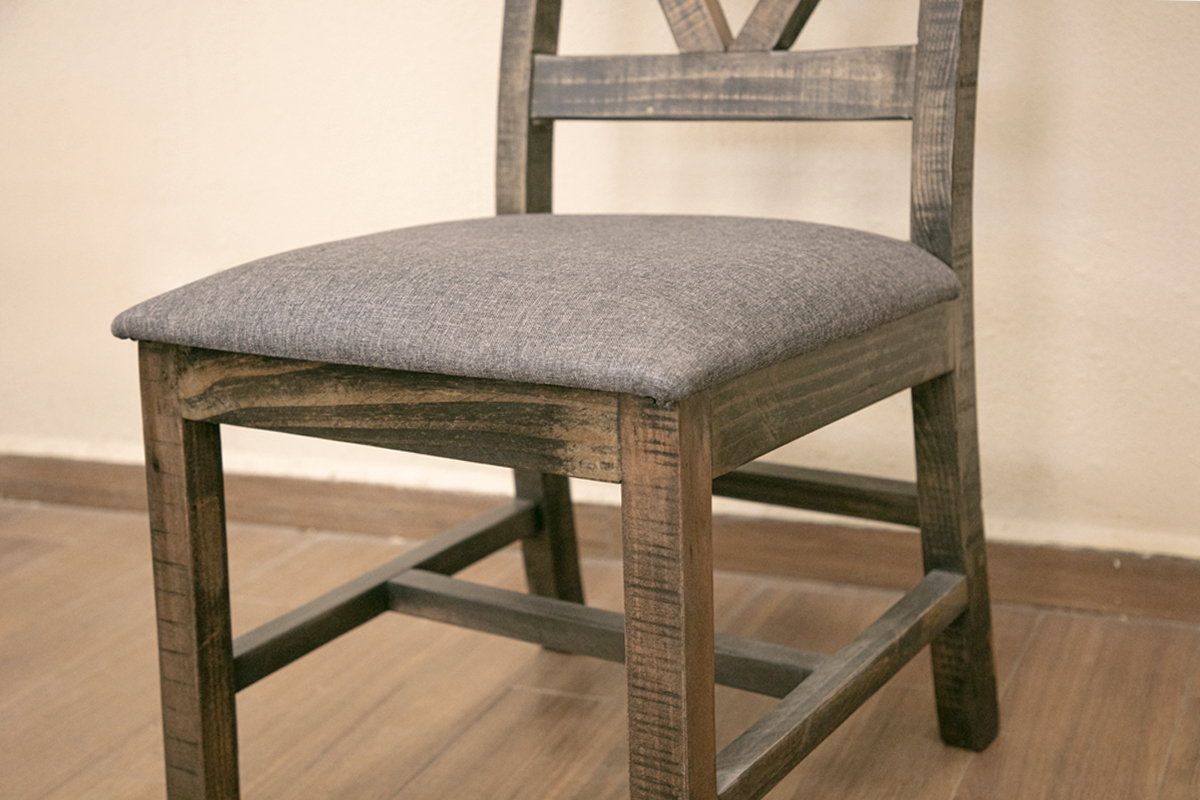 • The charm of our Loft Brown dining chair lies in its clean lines, expertly crafted from solid pine wood, and upholstered in elegant grey fabric. This classically designed chair with its uncluttered aesthetic serves as the perfect complement to any space.