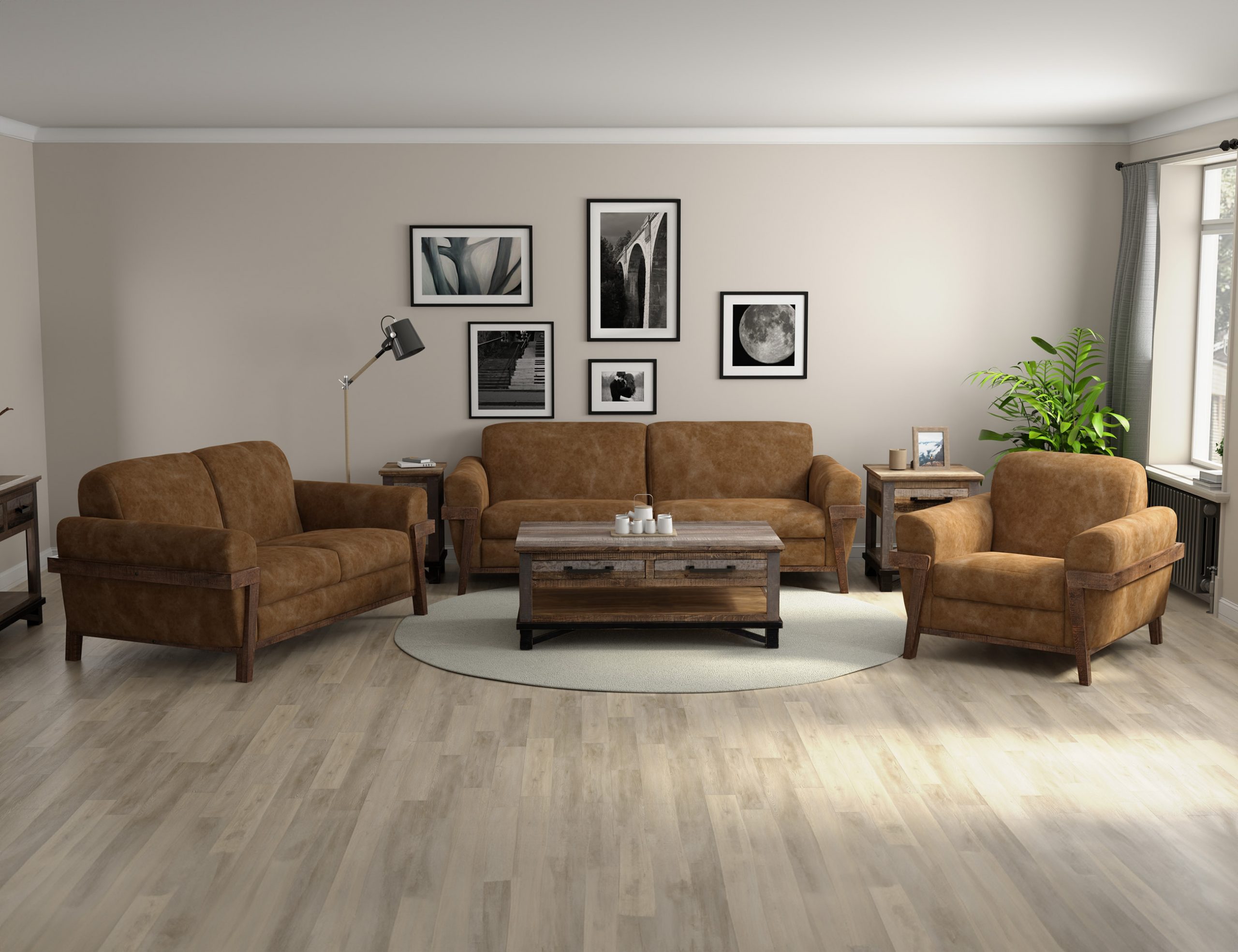 • Introducing our captivating Loft Brown Collection, where traditional design seamlessly merges with mid-century modern details in this stunning transitional piece. With its distinctive exposed pine wooden legs and frame, retro-inspired rolled arms, and meticulous craftsmanship, this collection features solid wood and 15mm-thick, 5-layer plywood construction, ensuring both the strength and durability of the frames.