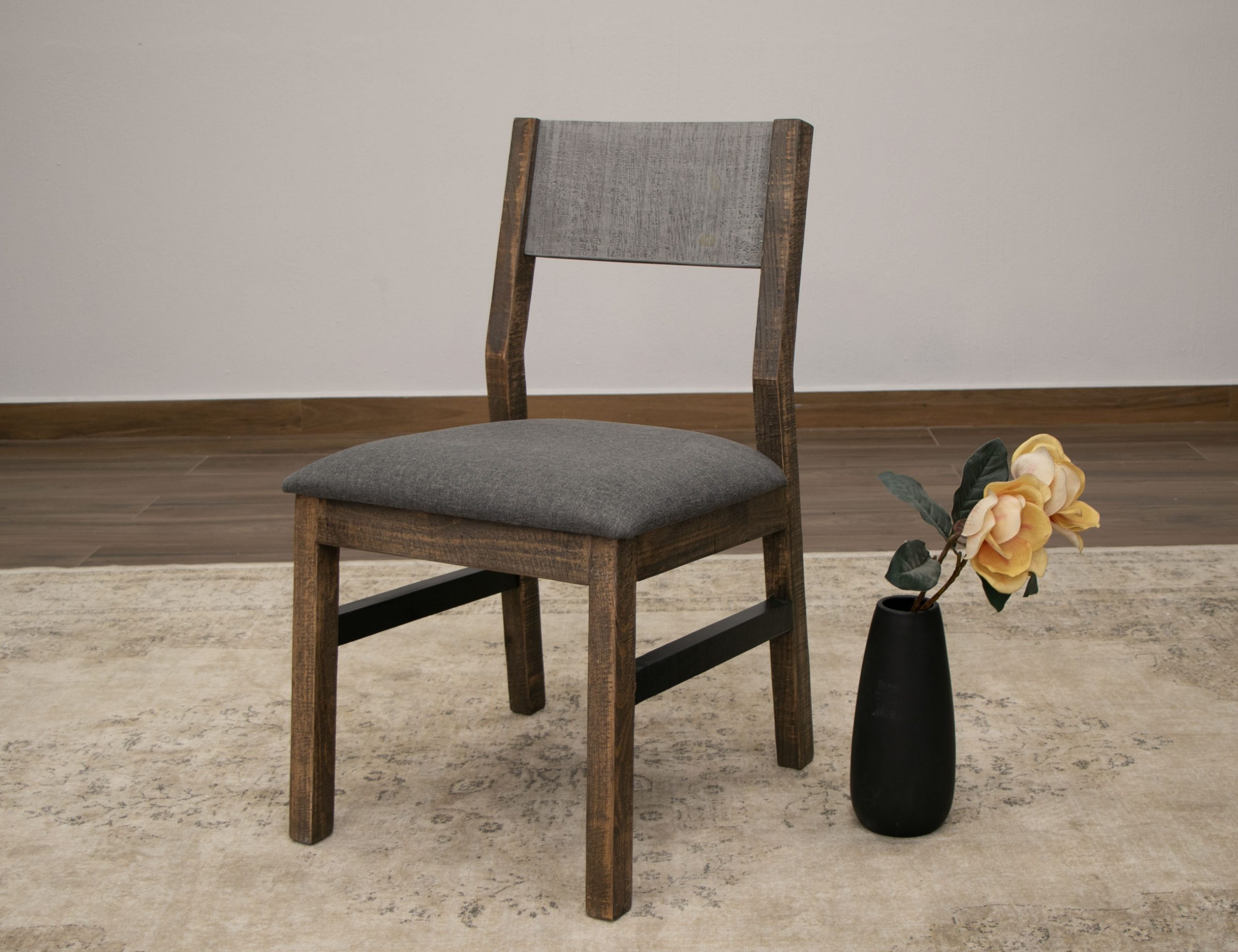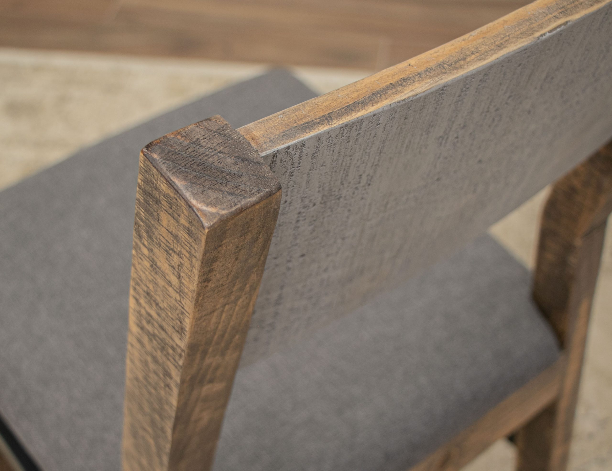 • Multi-step hand-painted finish in gray and brown tones for a “reclaimed wood” look.
