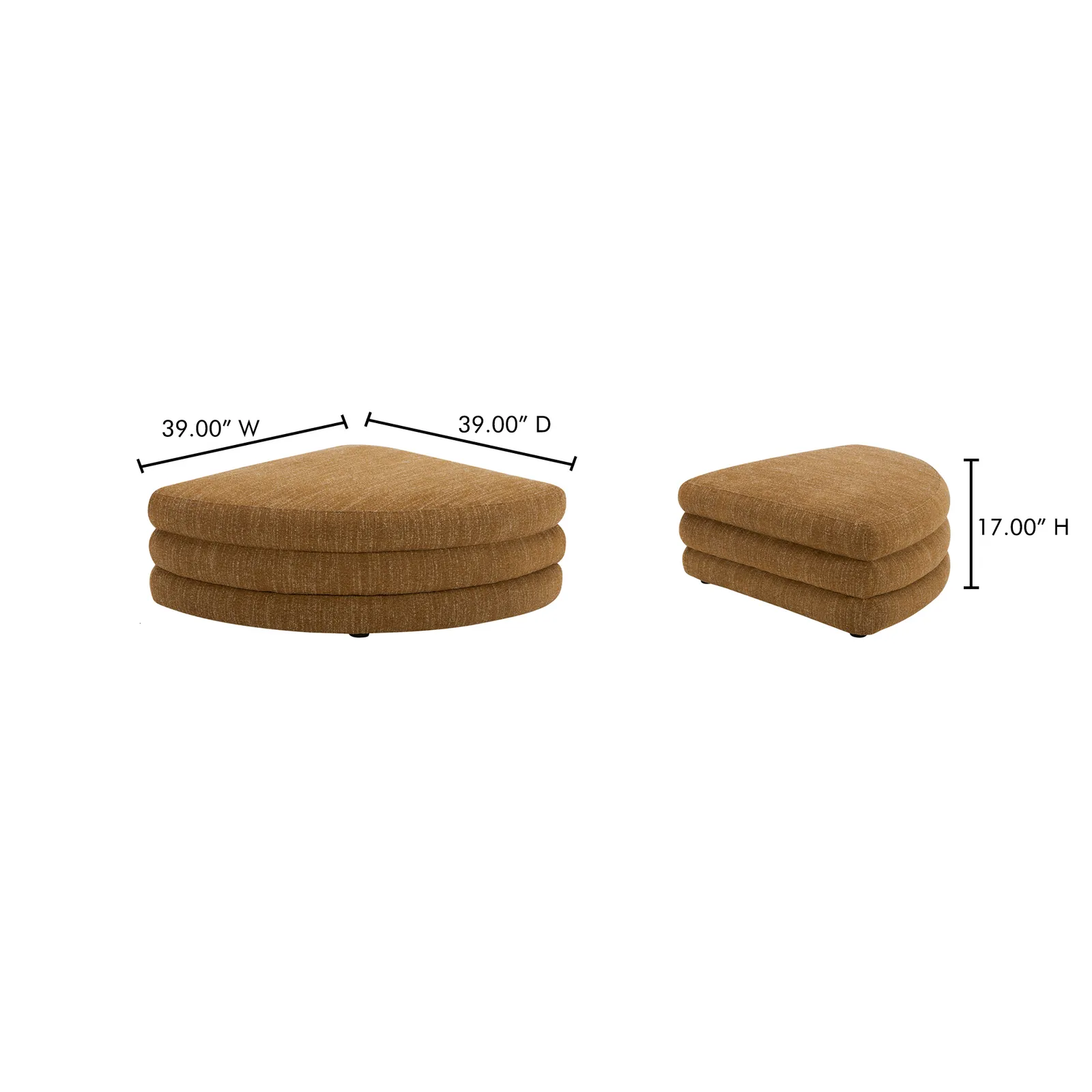 Influenced by the playful forms of the 1970s, the Lowtide curved ottoman showcases a layered appearance that promotes comfort. Its vintage influence and understated elegance are enhanced by the use of textured fabric. On its own or combined as a modular sectional, this piece adds visual interest while allowing for creative arrangement possibilities.