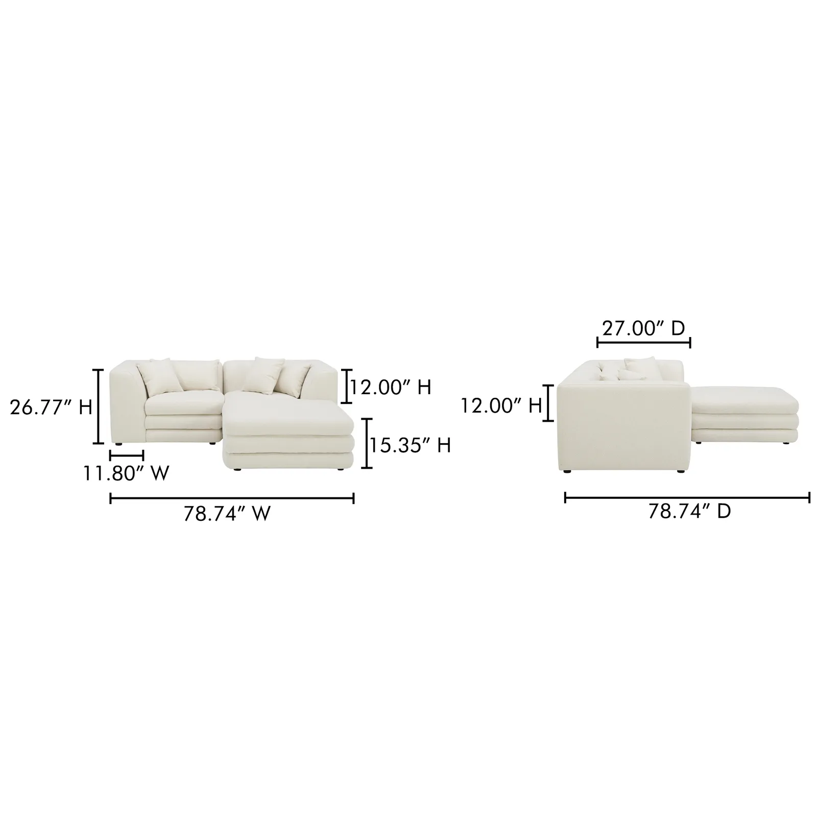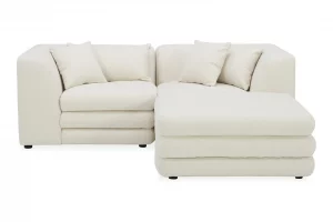 Influenced by the playful forms of the 1970s, the Lowtide nook modular sectional configuration showcases a layered appearance that promotes comfort. Textured fabric enhances its vintage influence and understated elegance, as this modular sectional adds visual interest while allowing for creative arrangement possibilities.