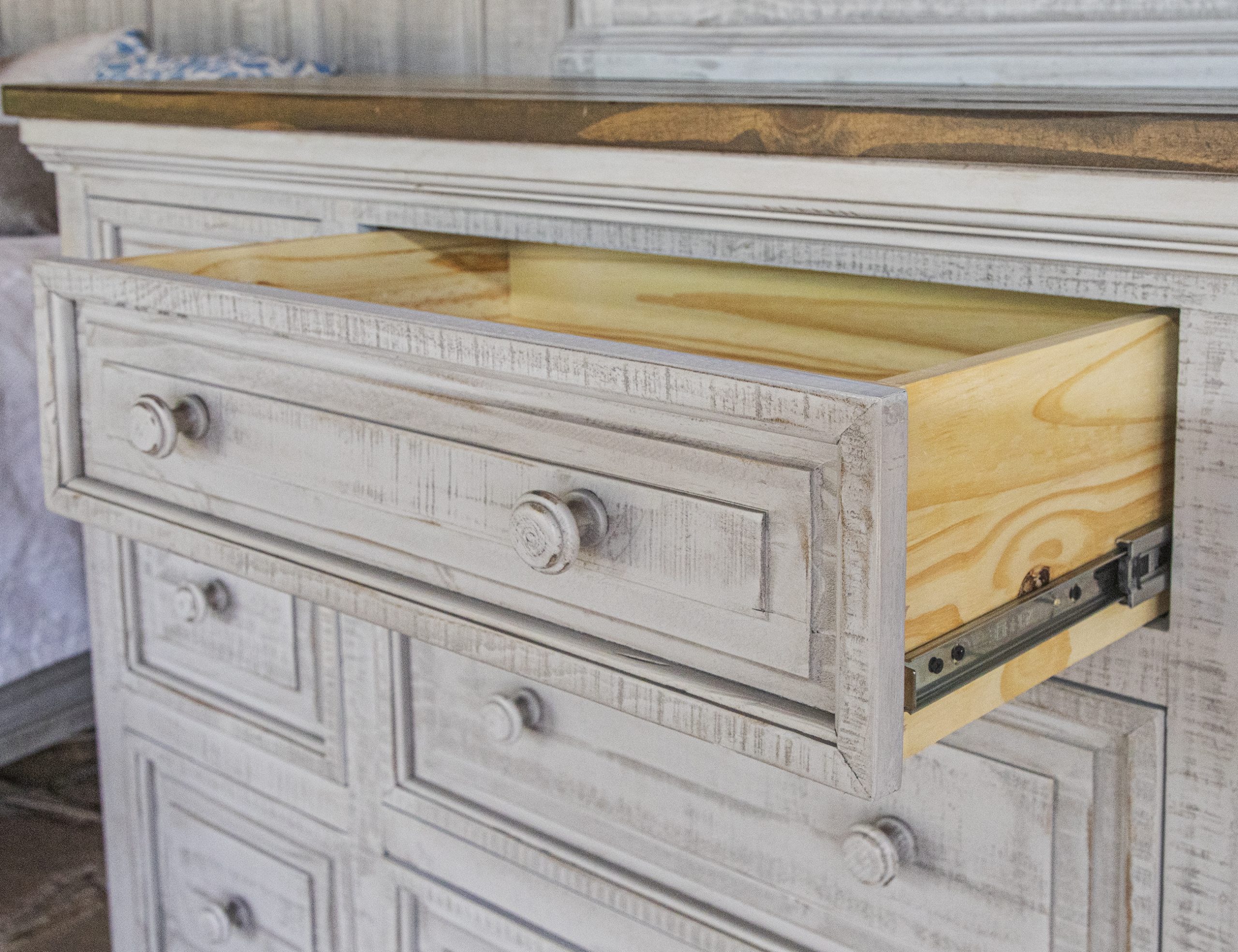 • Introducing the transitional two-toned Luna Gray collection. Crafted from pine wood, this collection boasts a sleek, clean-line silhouette, perfect for complementing any space.
