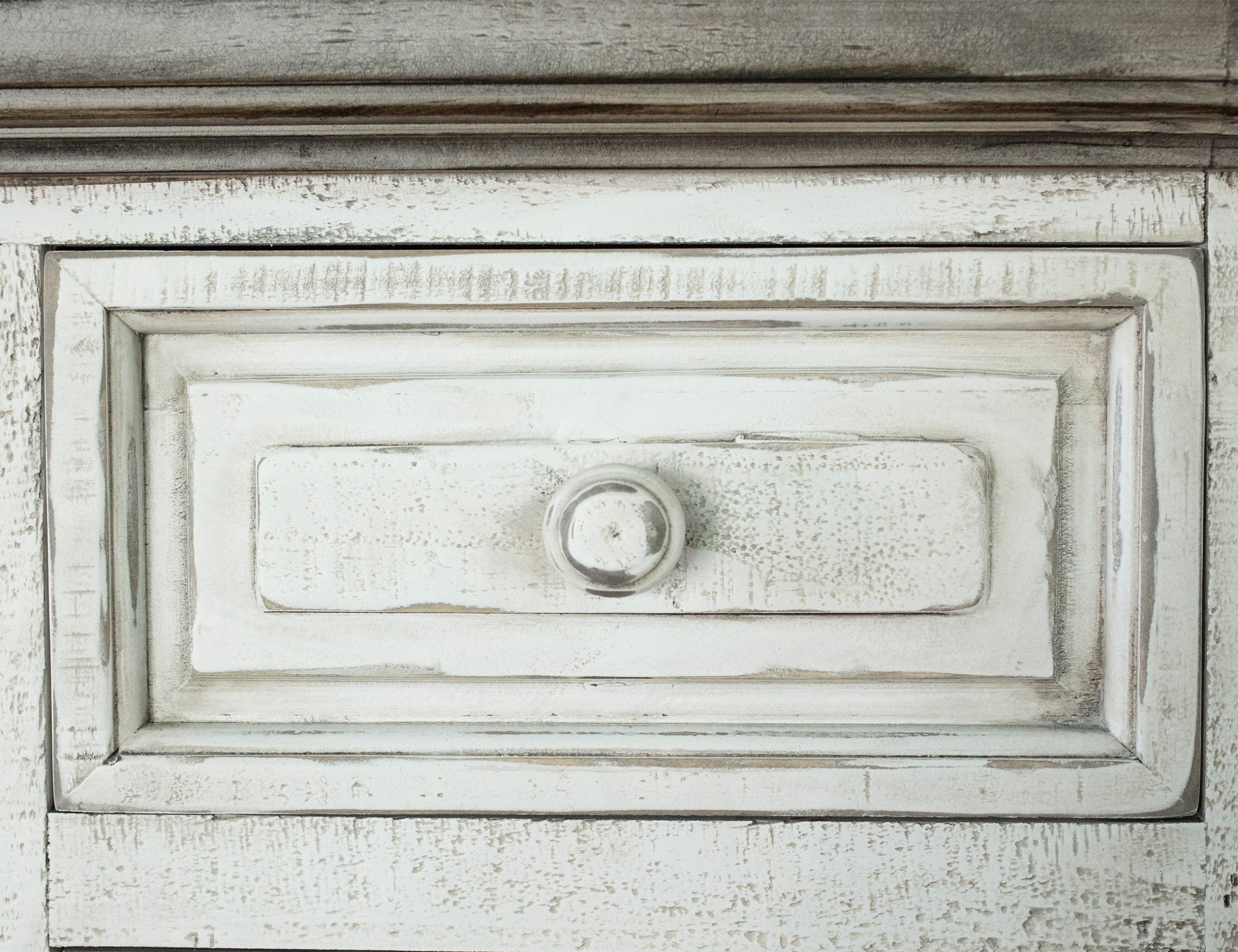 • Finish is achieved through a multi-step lacquer in a weathered gray, with natural brown tops.