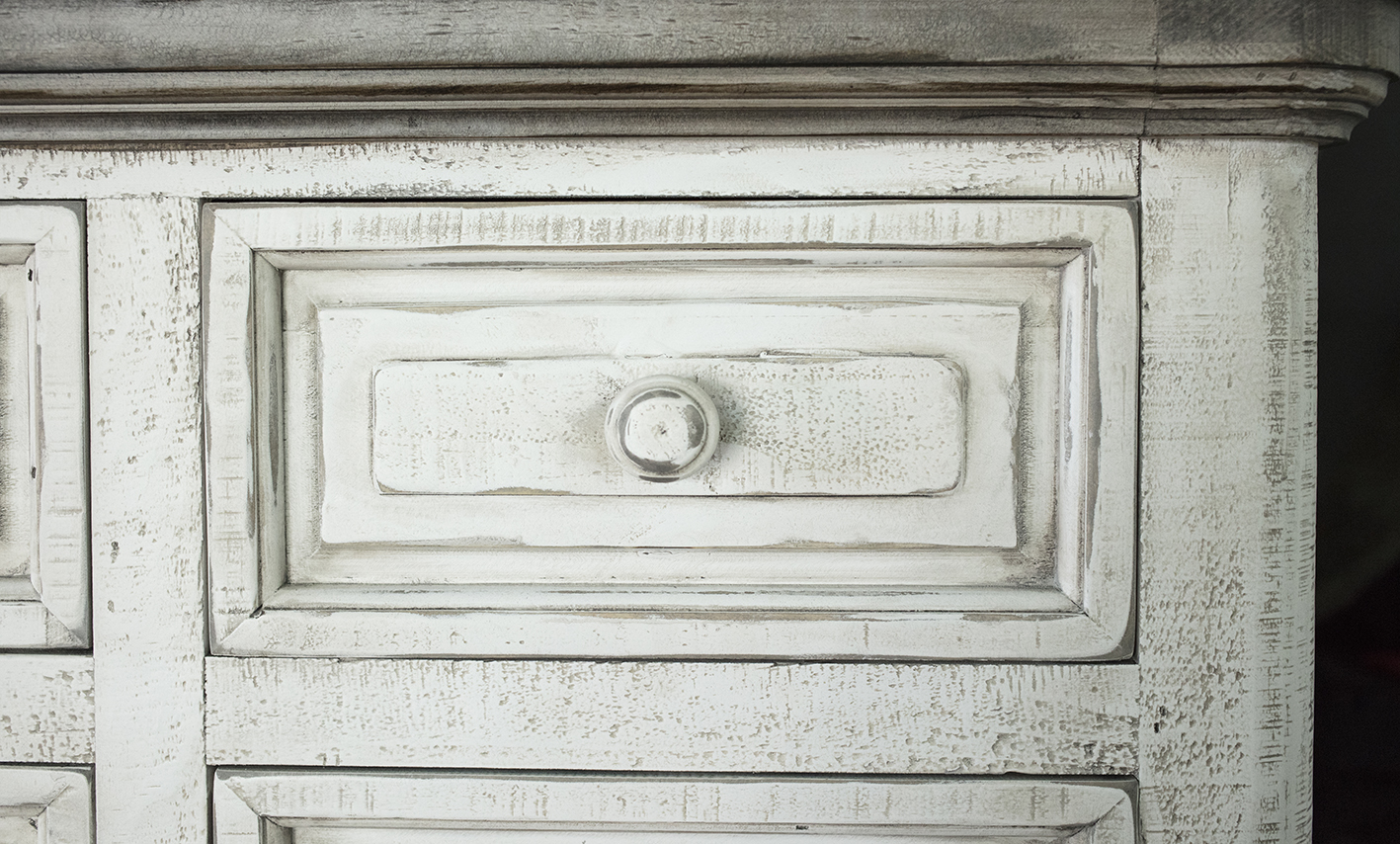• Introducing the transitional two-toned Luna White collection. Crafted from pine wood, this collection boasts a sleek, clean-line silhouette, perfect for complementing any space.