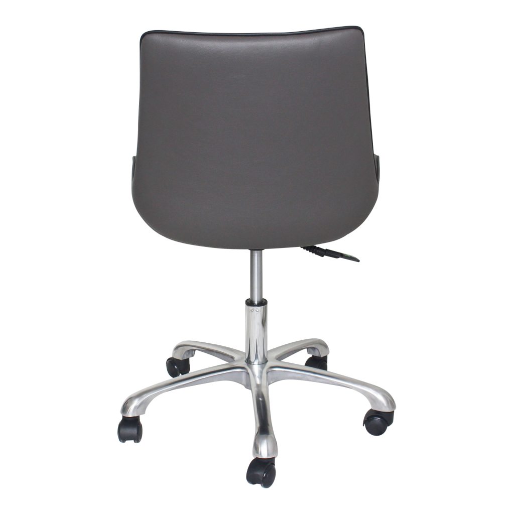 With a large open seat and lipped edges, the Mack Office Chair makes your workday a little more relaxing. Grey faux leather upholstery and silver swivel base give this chair a sophisticated modern look. An adjustable base makes this chair a versatile addition to most office desk heights.