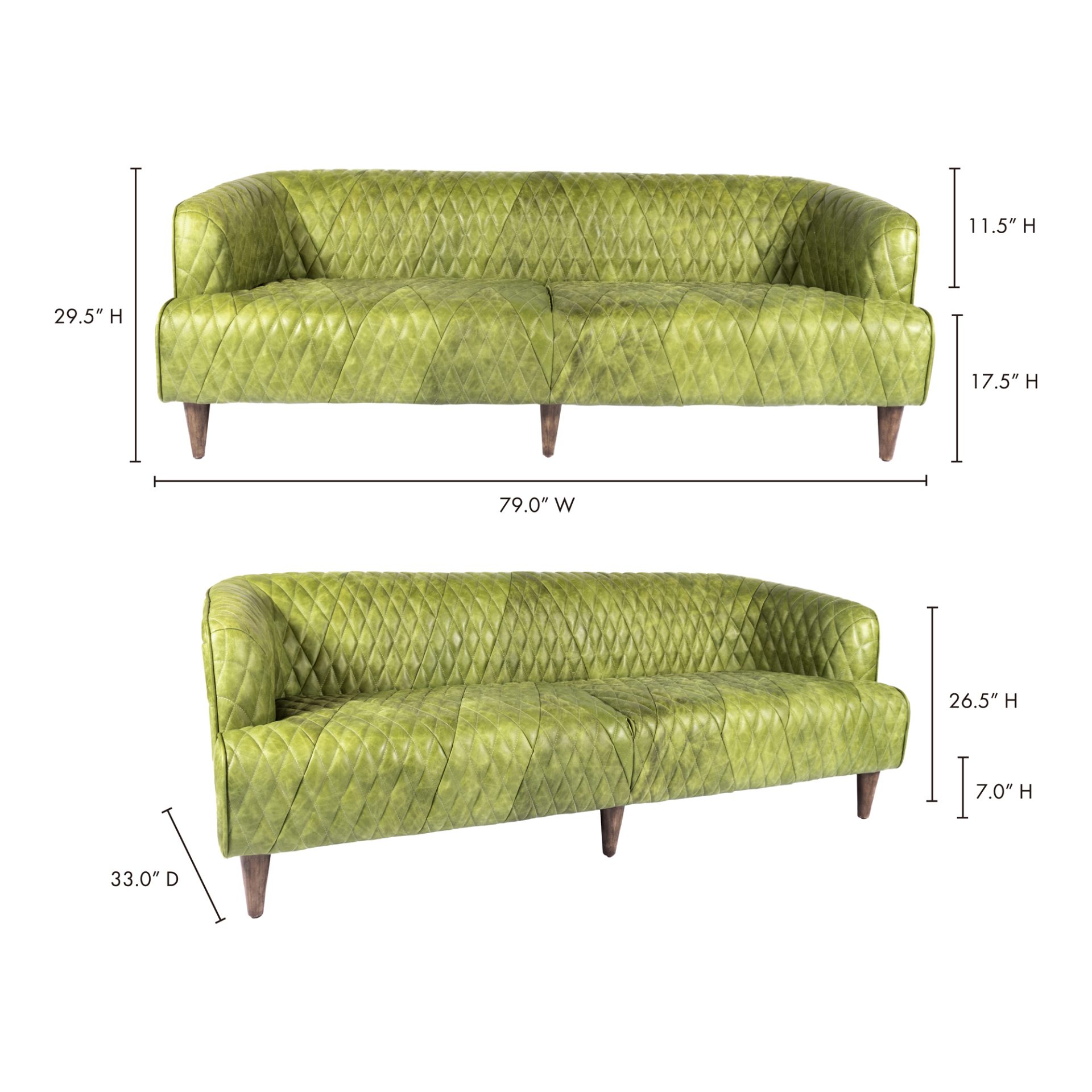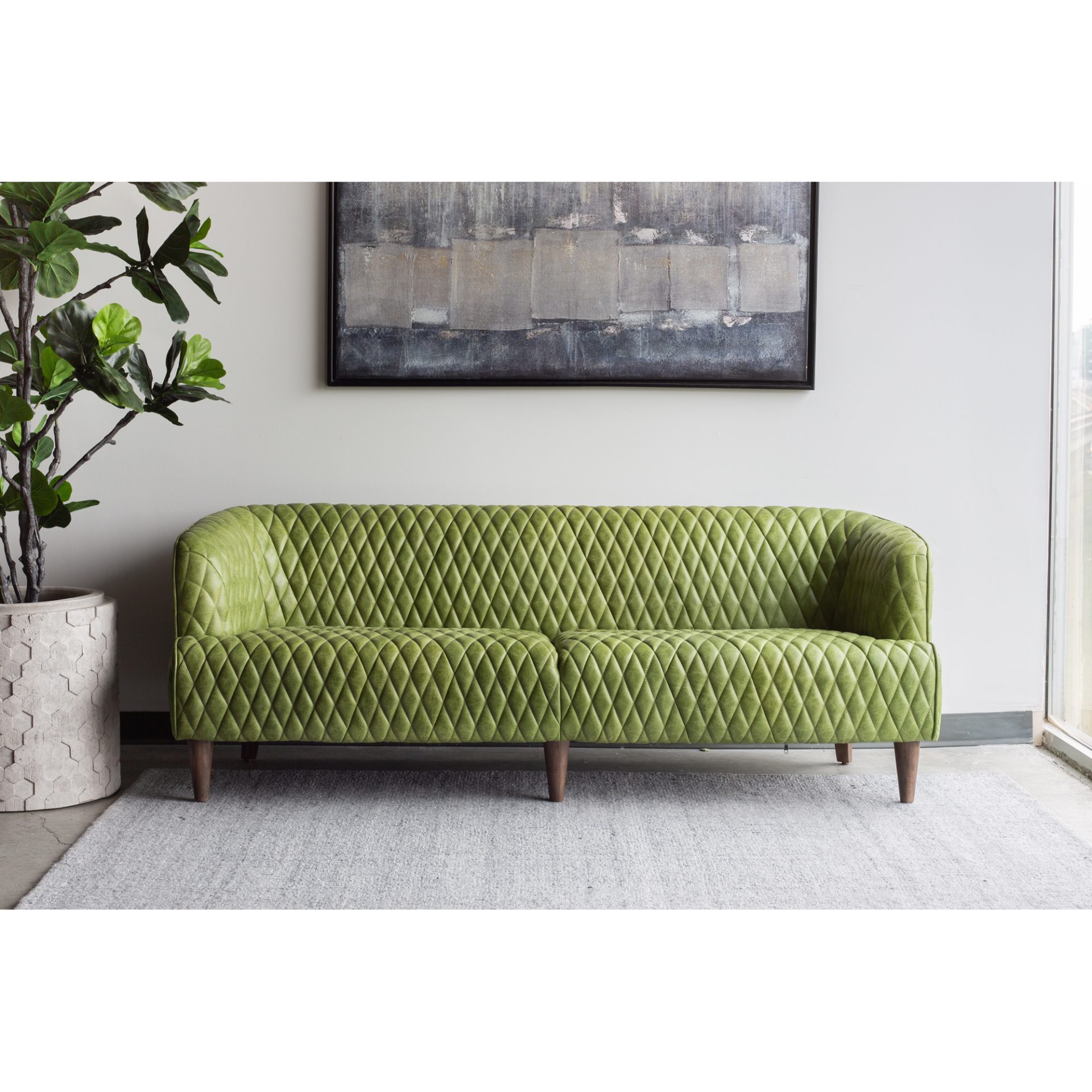 MAGDELAN TUFTED LEATHER SOFA JUNGLE GROVE GREEN LEATHER