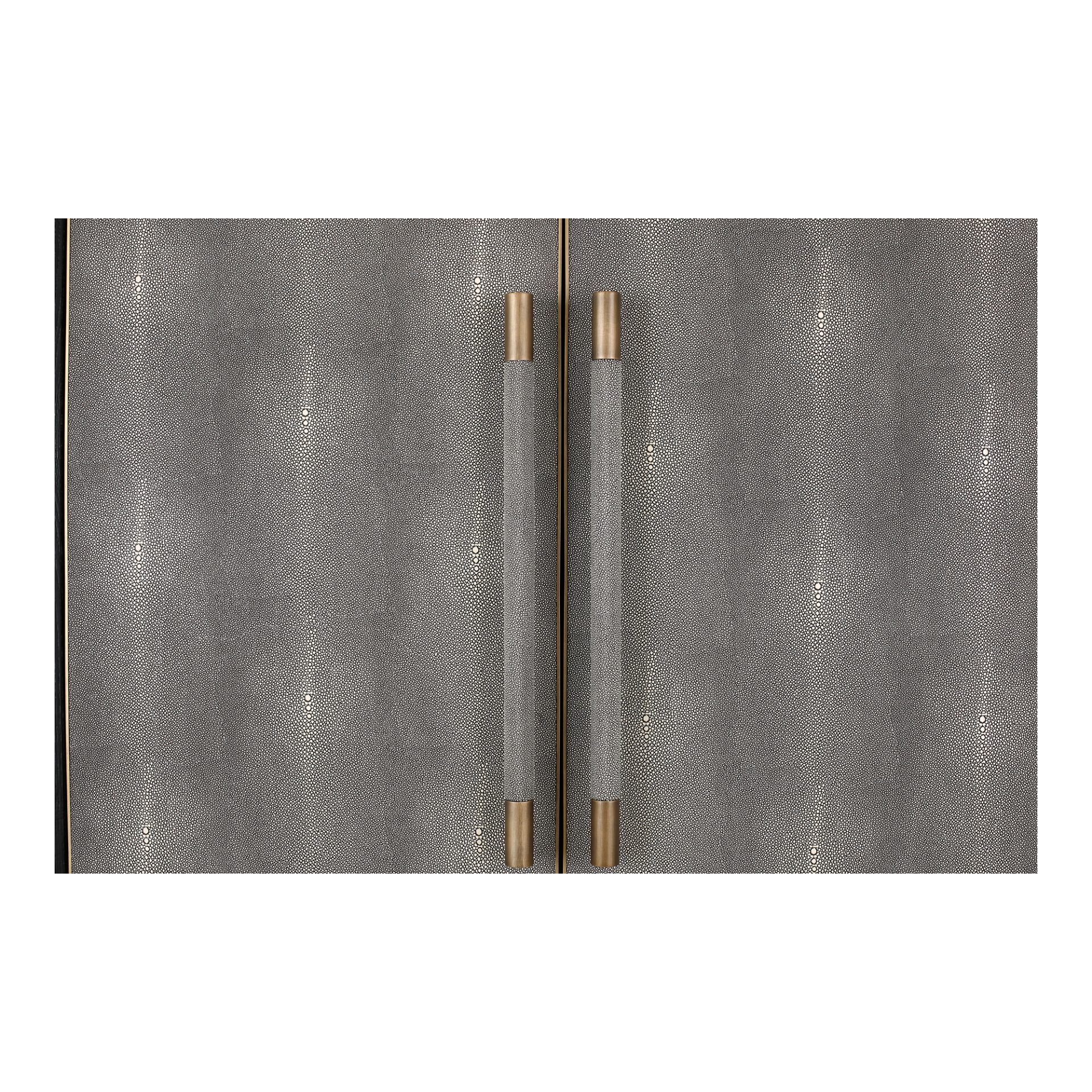Feeling for the timeless glamor of art deco with a modern twist? Meet the Mako collection. With each item upholstered in the highest quality vegan leather shagreen, the Mako collection brings effortless style, visual texture and substance to your living space. An elegant and sleek storage solution, the Mako cabinet’s soaring black oak frame and antique gold-finished legs make it a showstopper. Featuring both subtlety and depth, the Mako collection will bring elegance to any living area.